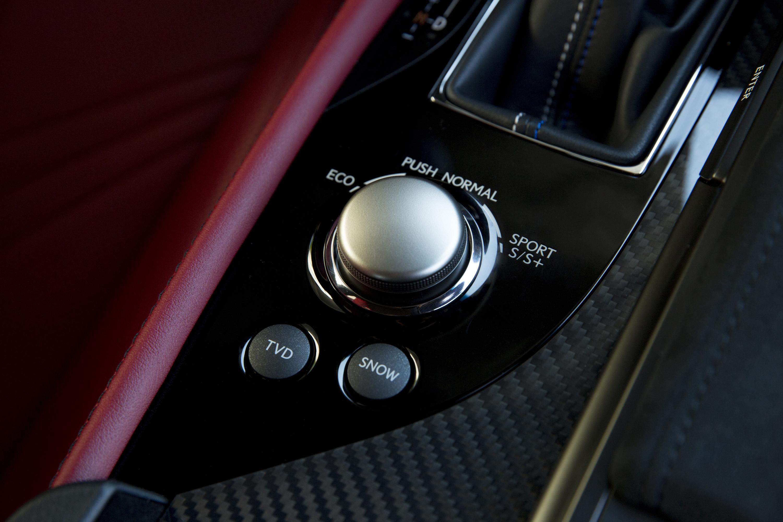 First, there are the drive modes. Eco does what most Eco modes do: taper back throttle inputs and reduce the air conditioning in the name of saving fuel. Around town, Eco is your friend. Next is Normal, the name really gives it away. A Sport mode taps into the powertrain's capabilities a little further, but it's the Sport Plus (S+) mode that makes the GS F happiest. Here, throttle is maximized—with the Active Sound Control helping you appreciate the V8 with "desirable sound notes" piped right into the cabin—and even the electric power steering is wound a little more tightly.
