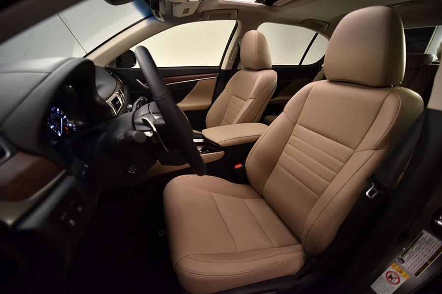 The mid-range GS 350 boasts AWD and an F Sport package is available on all three GS models with improved chassis tuning for the track and staggered tire sizes on rear-wheel drive models. F sport models can also be fitted with optional Lexus Dynamic Handling with Dynamic Rear Steering.