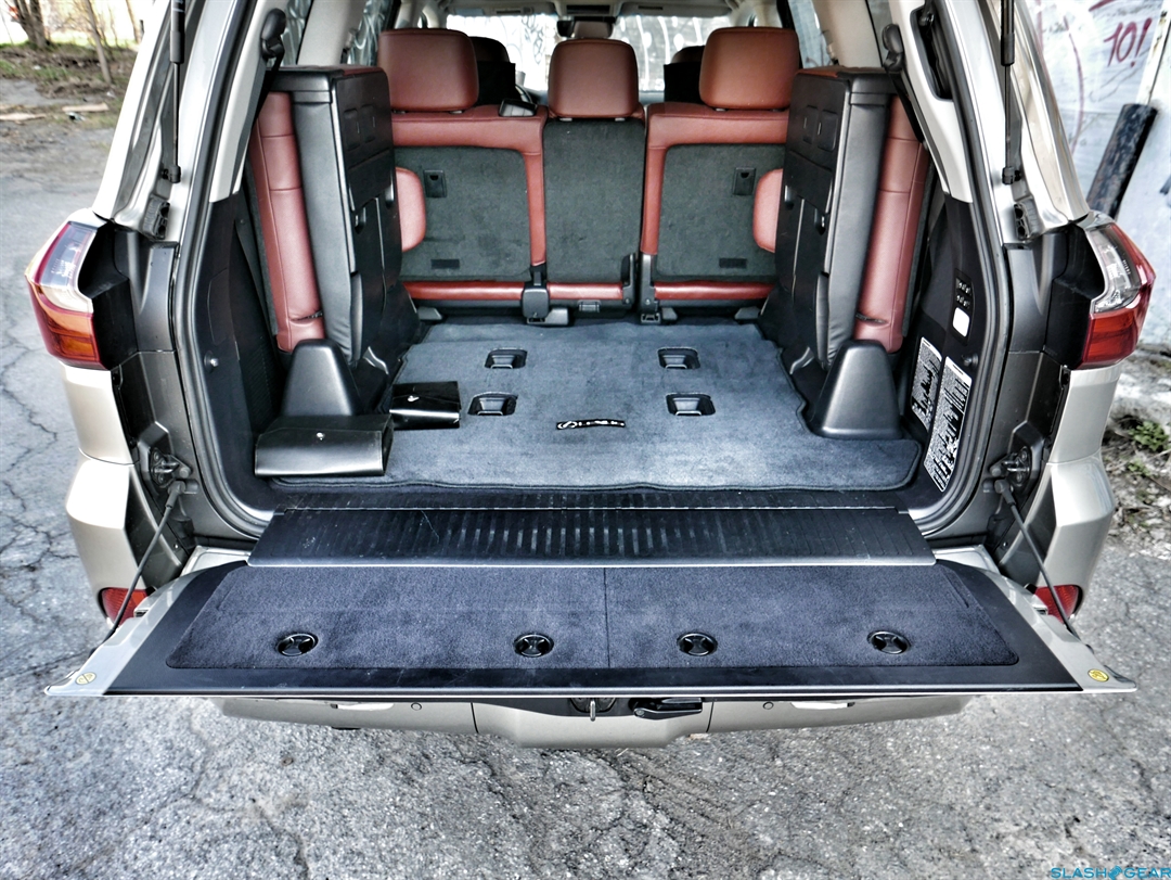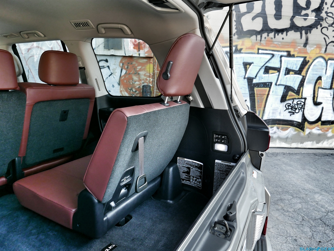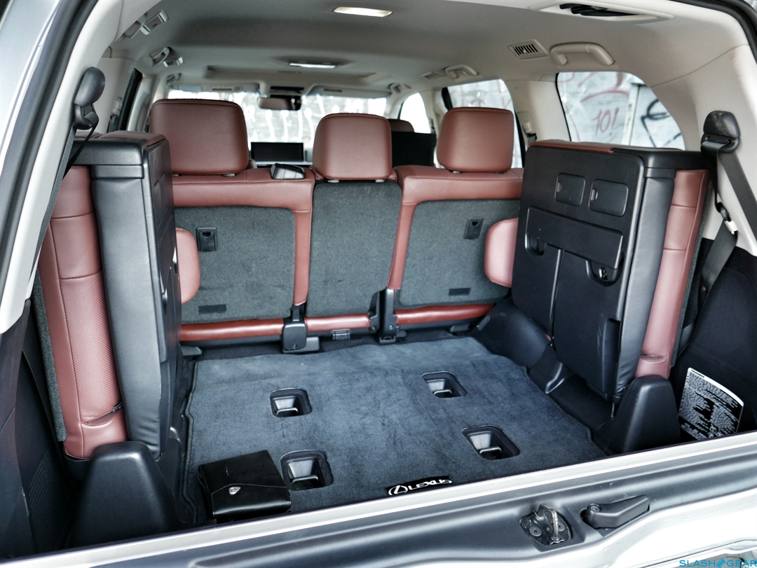 Instead of a back bench that disappears discretely into the floor, the LX maintains a split seat that folds up against either side of the cargo compartment, taking up valuable hauling space and offering child-friendly (at best) comfort when deployed. It's a setup that's borrowed directly from its Toyota Land Cruiser sibling, and it's the one area where the LX finds itself at a serious disadvantage when compared against similarly-sized sport-utility options.