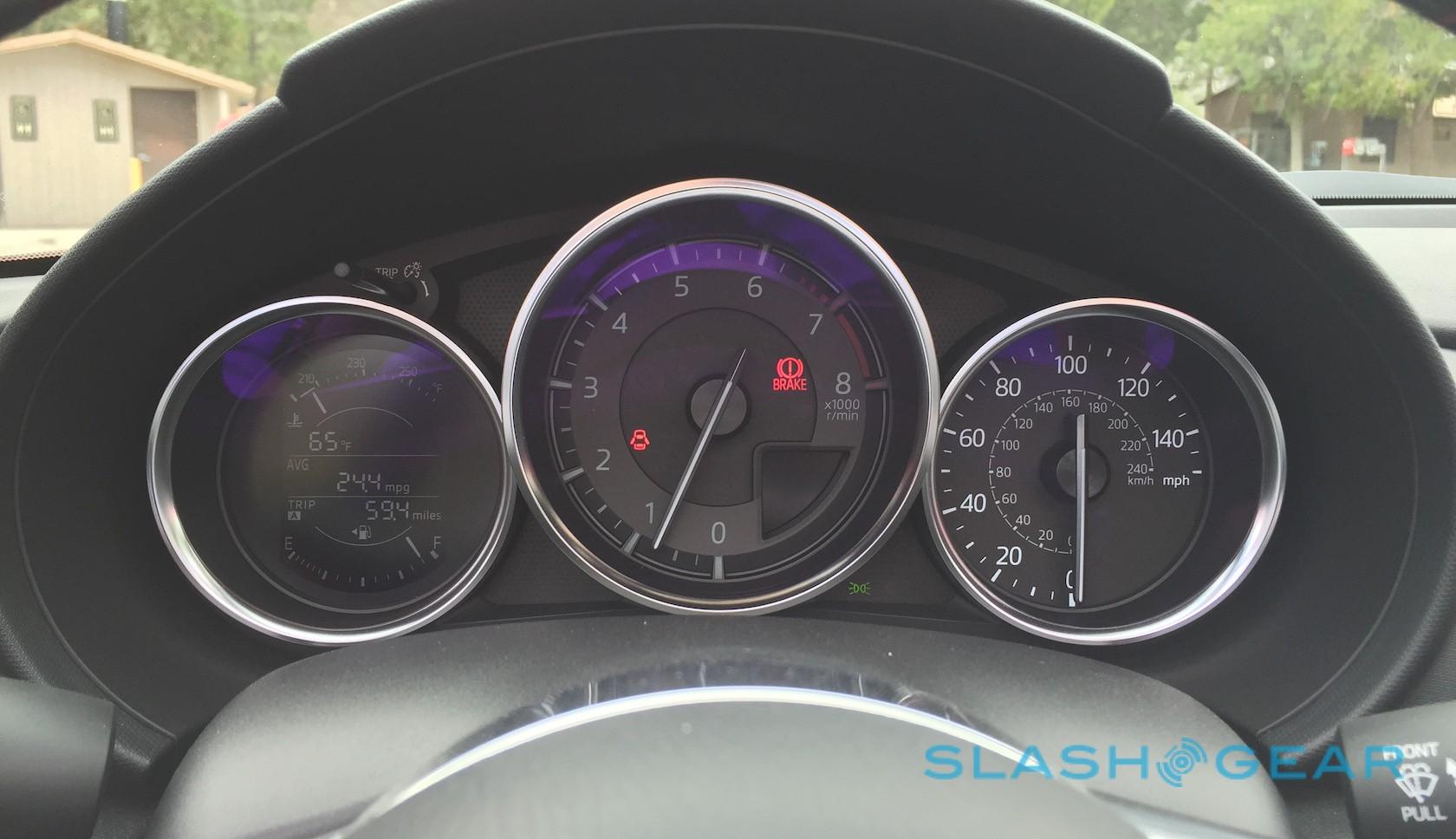 If there are compromises in the cabin, they're the result of Mazda doing its best to hit both price and weight targets. The standard kit list on the Sport is solid: air conditioning, power locks and windows with remote keyless entry, a leather-wrapped wheel and shifter, Bluetooth, and a 6-speaker audio system with speakers in the driver's headrest.