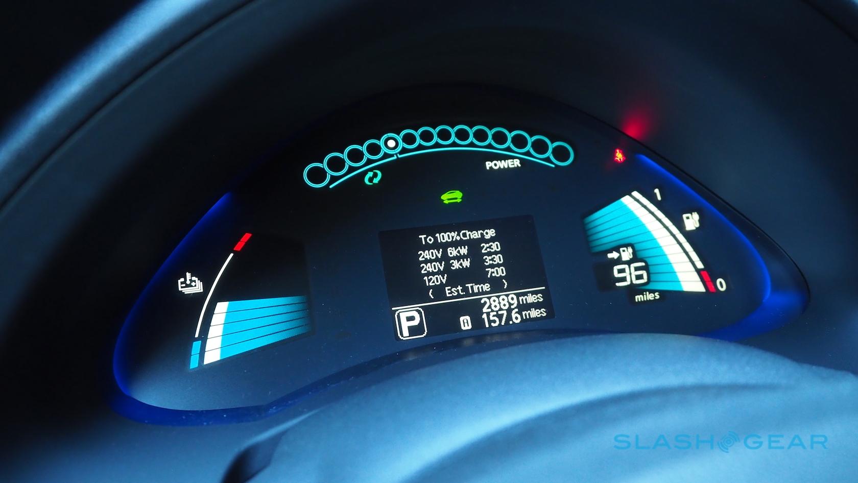 Both companies provide a regular charger in the trunk from which you can rejuice each car from a standard 120V outlet. You have to factor in a long time off the road if you're relying on that, however. While charging, the Leaf shows a rough indication of its battery status with three LEDs blinking on the dashboard – it's handy to be able to glance outside and see where it's up to – and both cars are app-connected so you can remotely check in on status.