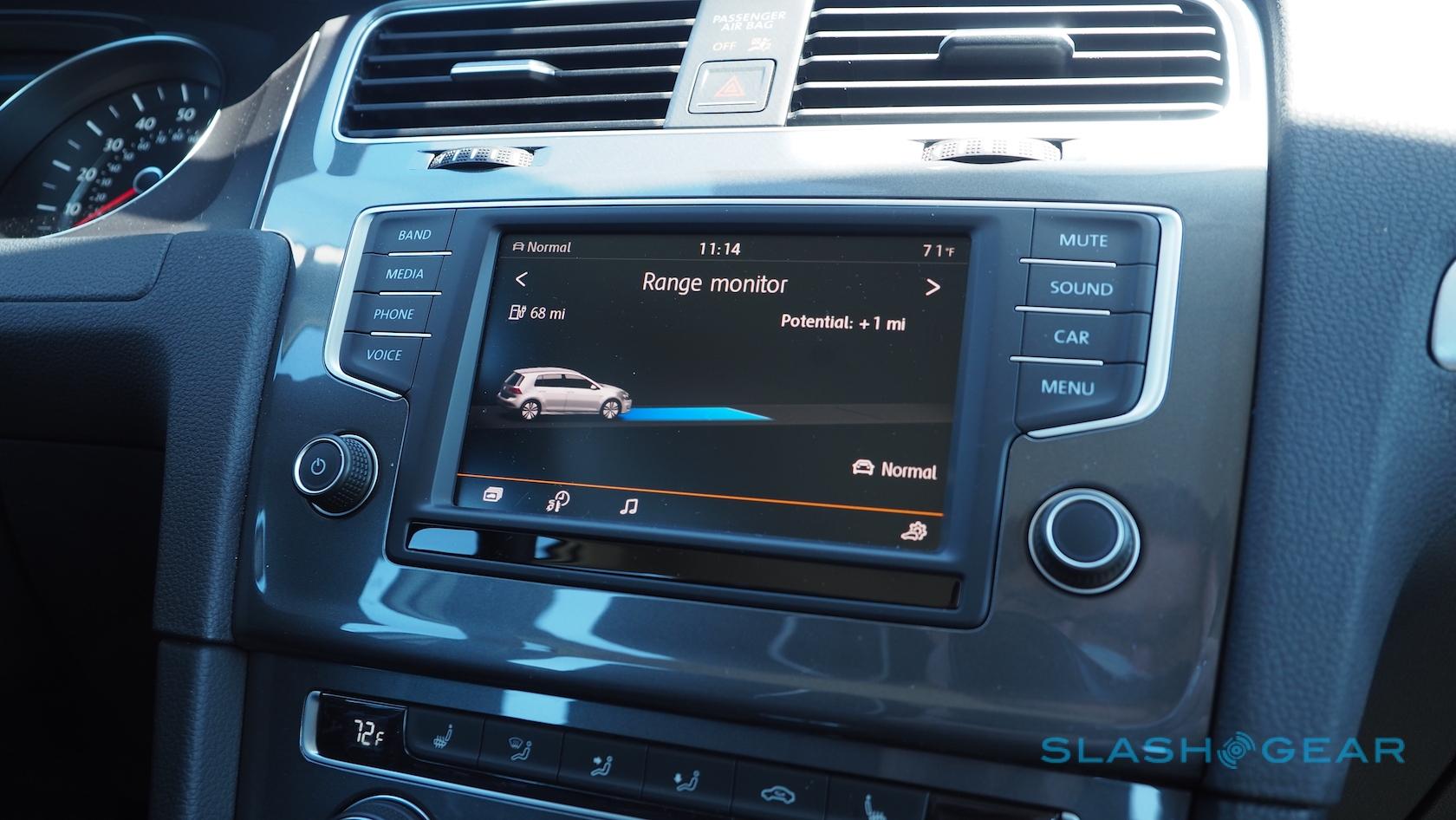 The gas-powered car's dashboard carries over too, which means an analog fuel gage repurposed to show battery level. I'm less convinced by VW's graphics overall; the touchscreen in the center console didn't give me the same at-a-glance overview that I felt I got from the Leaf. In the driver's display, I had to choose between the useful digital speedo and always seeing the range-remaining estimate.