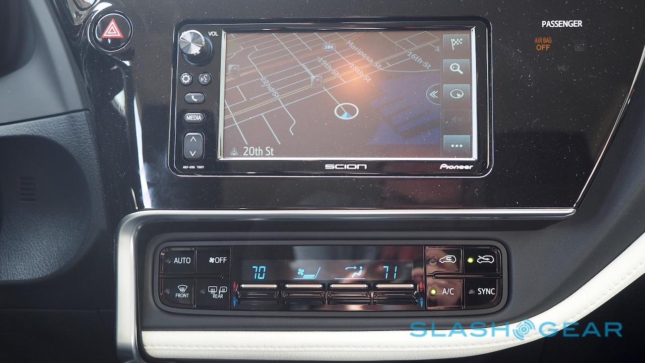 Scion is keen to play up its Mono Spec approach to the options list, and sure enough beyond adding navigation your only choices are transmission and exterior color (I'd say go for something bright, which helps highlight the sheet-metal's creases). It means you get a faux-leather steering wheel, dual-zone climate control, smartphone connectivity for the Pioneer 7-inch touchscreen head unit, eight airbags, a rearview camera, and several other creature comforts all included in the sticker price.
