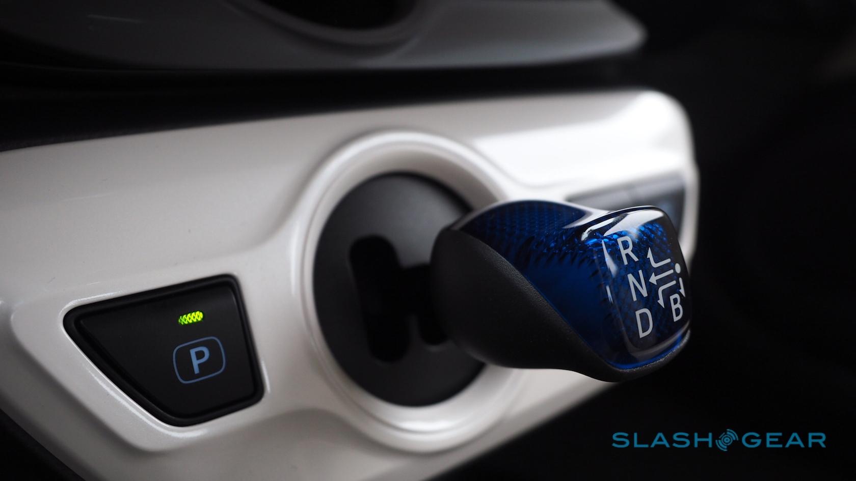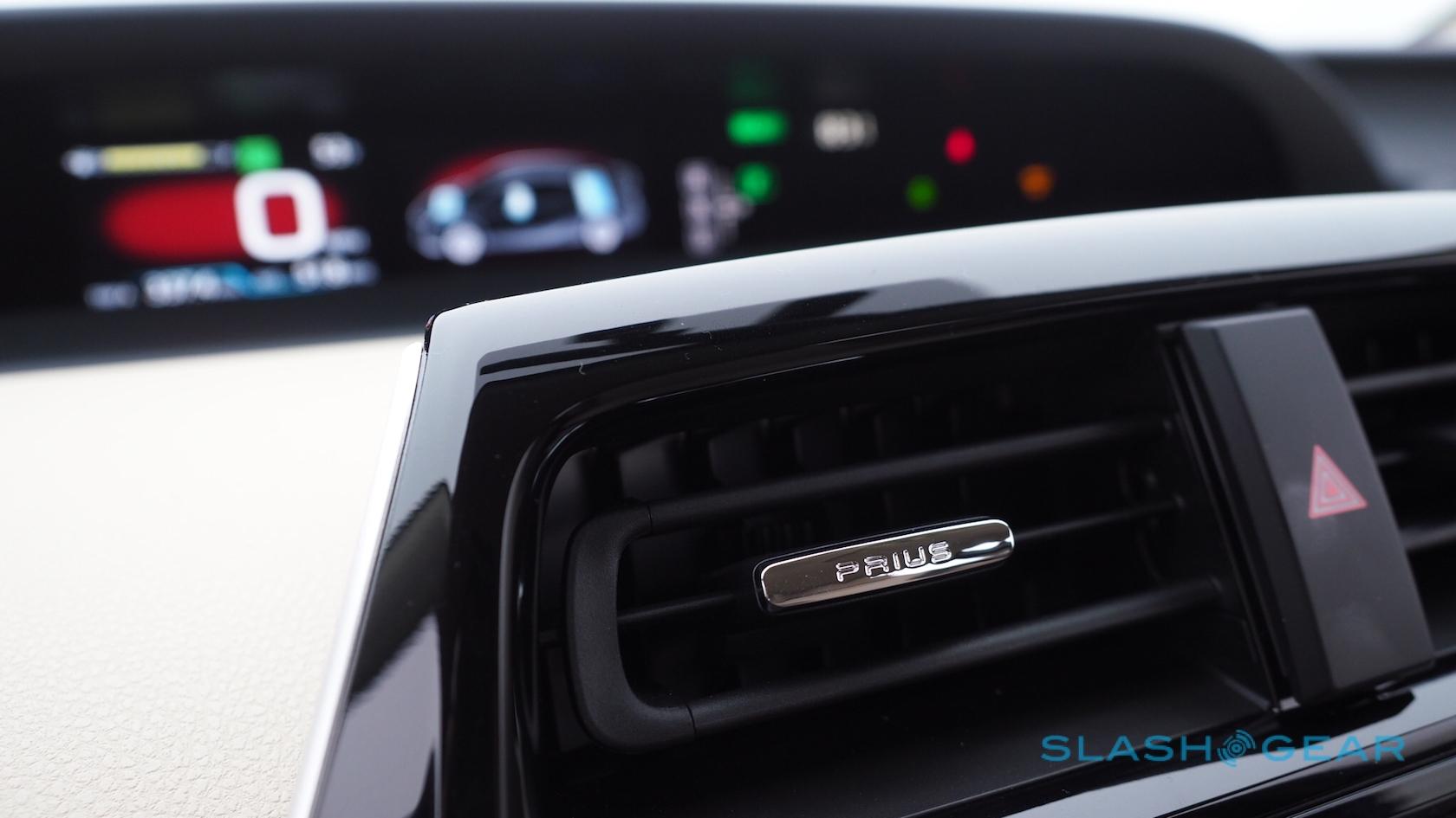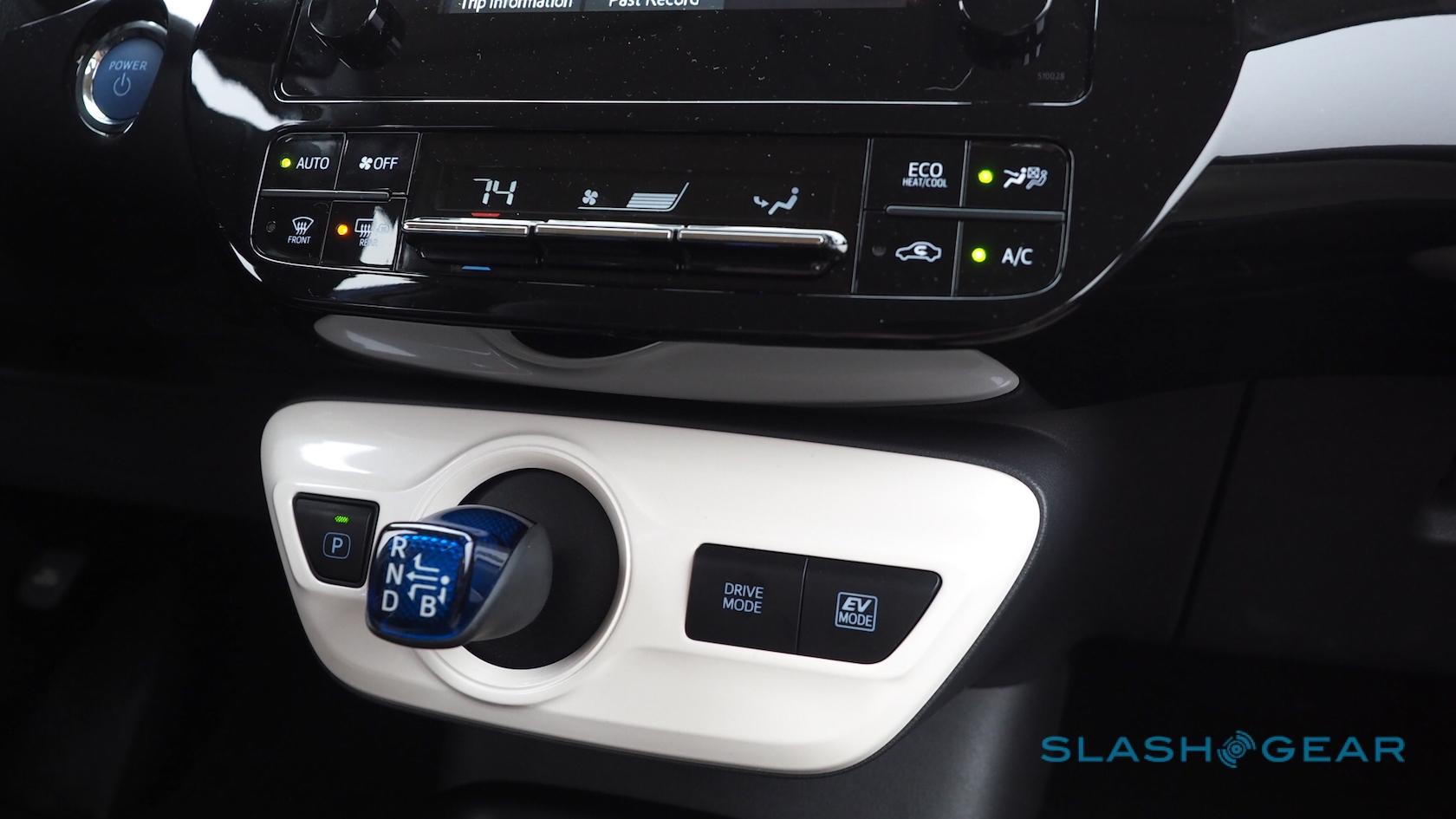"Prius" logos are integrated into the vent controls, which is a neat touch, and the stubby little shifter looks either like a space-age tulip or a Dalek's groin attachment. Either way, it notches the CVT between modes with minimal fuss, and the white surround keeps the cabin light.