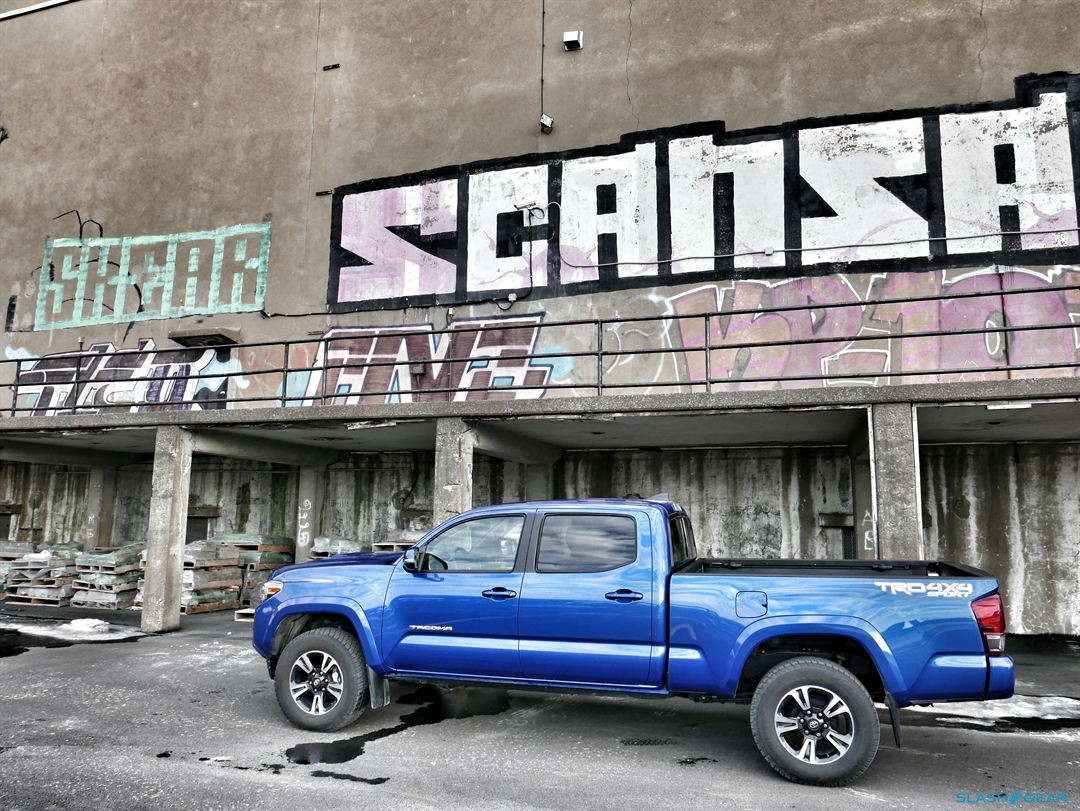 The 2016 Toyota Tacoma lays bare the schism that currently exists amongst mid-size trucks. With a new engine, brash styling, and unchallenged off-road credentials, the Tacoma has got what it takes to satisfy the legions of current Toyota owners looking to re-up with the latest model. Slip behind the wheel, however, and you're treated to the kind of traditional truck experience that's been sidelined by full-size models and largely dialed-out of the redesigned Canyon and Colorado.