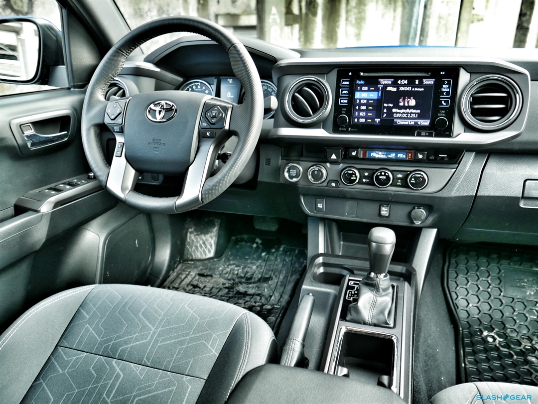 This 'business as usual' attitude extends to the pickup's interior trappings, which are the very definition of task-oriented. I like the big, easy-to-grasp buttons and toggles, but wasn't such a fan of the Entune infotainment interface, whose seven-inch touchscreen seemed behind the times in terms of graphics and functionality. The Tacoma is available in a pair of five-passenger body styles (front-hinged doors on the Access cab and full-size rear doors on the Double cab), and the Double I drove had plenty of room in the rear row for both people and cargo. Don't look for anything resembling high end trim inside the Toyota, however, as even the Limited's leather can't mask the simplicity of the truck's design. The Tacoma is also light on active safety, with only blind spot monitoring making the final cut on the options sheet.