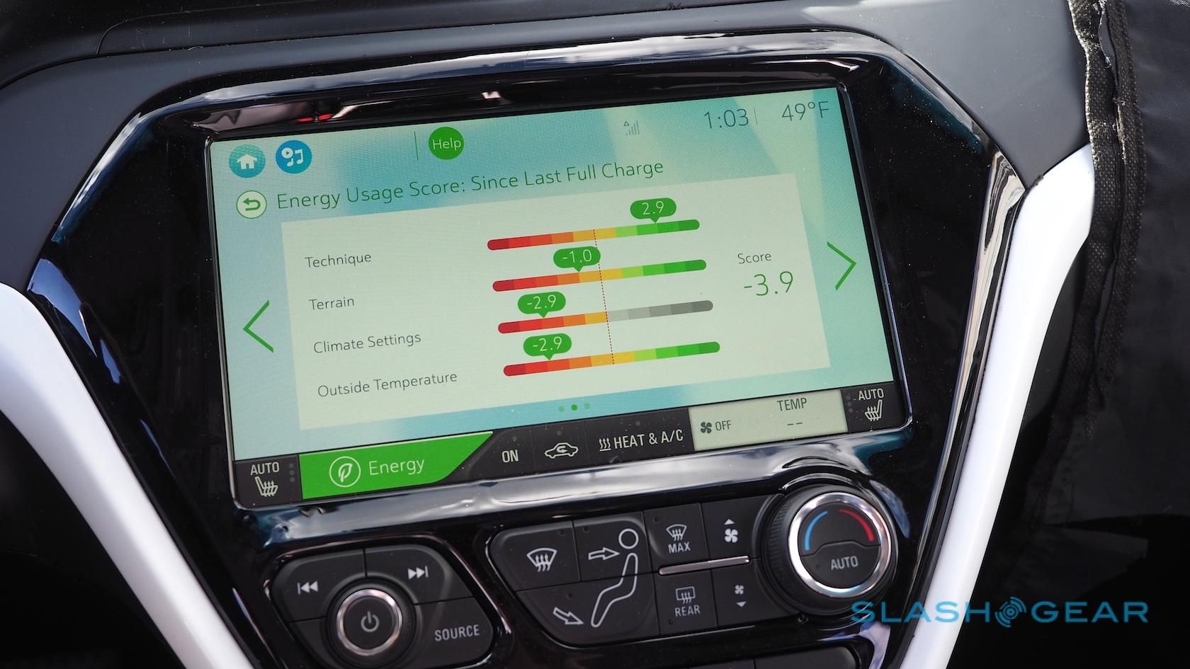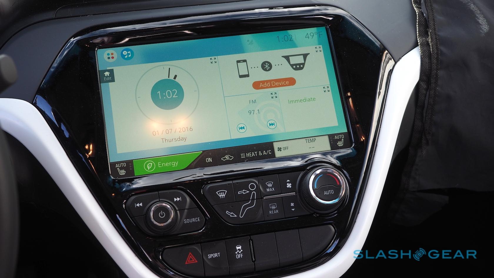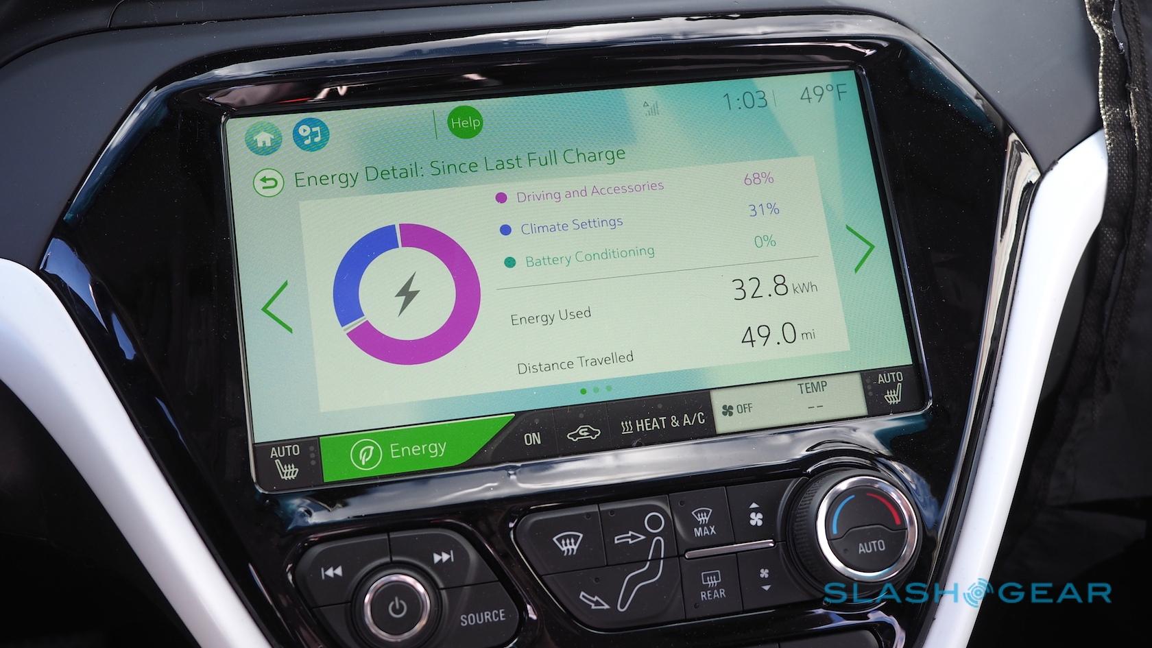 Chevy worked with LG on the software for that system, and it's one of the best I've used in testing cars. For a start it's fast – no uncertainty about whether you've tapped or not – and it does a good job of balancing details with remaining clean and unthreatening. The home screen can be reorganized with interchangeable widgets, and there's a persistent shortcut to the EV efficiency pages.