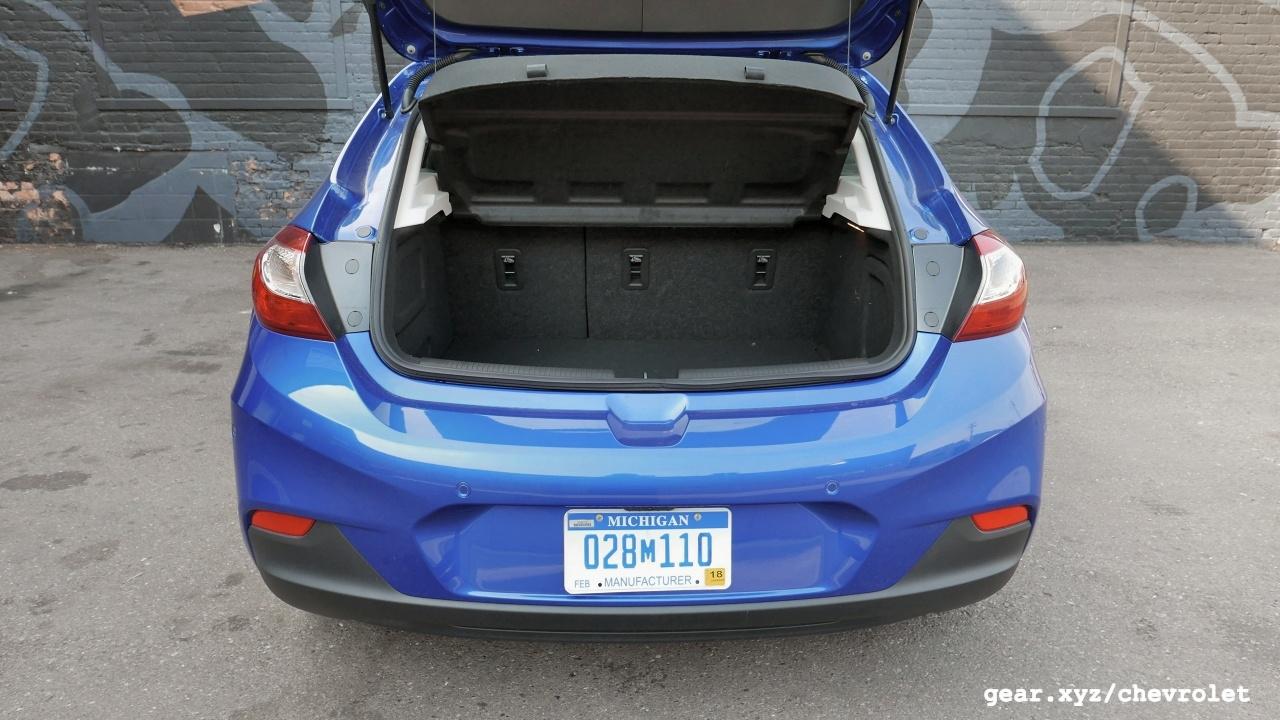With all of that carried over from the Cruze sedan, it's finally time to talk about what's new – specifically, the extended cargo space offered by the Chevrolet's hatchback design. With a full load of passengers (and only a modest slope in the roofline affecting headroom in the second row), the Cruze hatchback can haul just under 23 cubic feet of gear, which is on par with what you'd normally find in a full-size sedan. Fold the back seat forward and you'll find 47.2 cubic feet of total carrying space. This figure is about five cubic feet below the class-leading Volkswagen Golf, but it beats out the Ford Focus and matches the Mazda Mazda3, keeping it competitive in its class. It's also worth noting that while the Cruze hatchback offers half a cubic foot less interior hauling capacity as compared to the subcompact Chevrolet Sonic hatch, the latter's design asks you to stack items vertically rather than spread them out (as you would with grocery bags, for example).