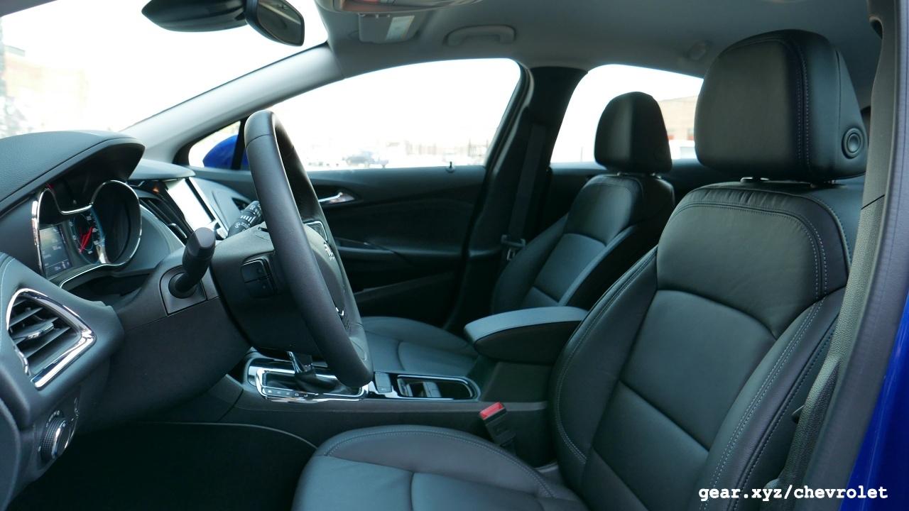 That being said, I think it's fair to say that most Chevrolet Cruze hatchback buyers are going to be more interested in comfortable commuting than turning in hot laps, in which case the compact car delivers. As I mentioned earlier, hatchback buyers trend towards spending more on their rides at ordering time, which means the top-tier LT and Premier models in the Cruze portfolio are the only ones available with the hatch. LT brings with it LED running lights, cruise control, the availability of heated seats, a push-button starter, and access to the RS package. The Premier adds a leather seats, a heated steering wheel (which shows just how plush small, affordable cars have become), 17-inch rims in place of the LT's 16-inch rollers, and a suspension system that's been upgraded at the rear for a smoother ride (plus the availability of navigation). Safety is also big with the Cruze: you'll find features such as lane departure warning and intervention, automatic forward braking, and a blind spot monitoring system.