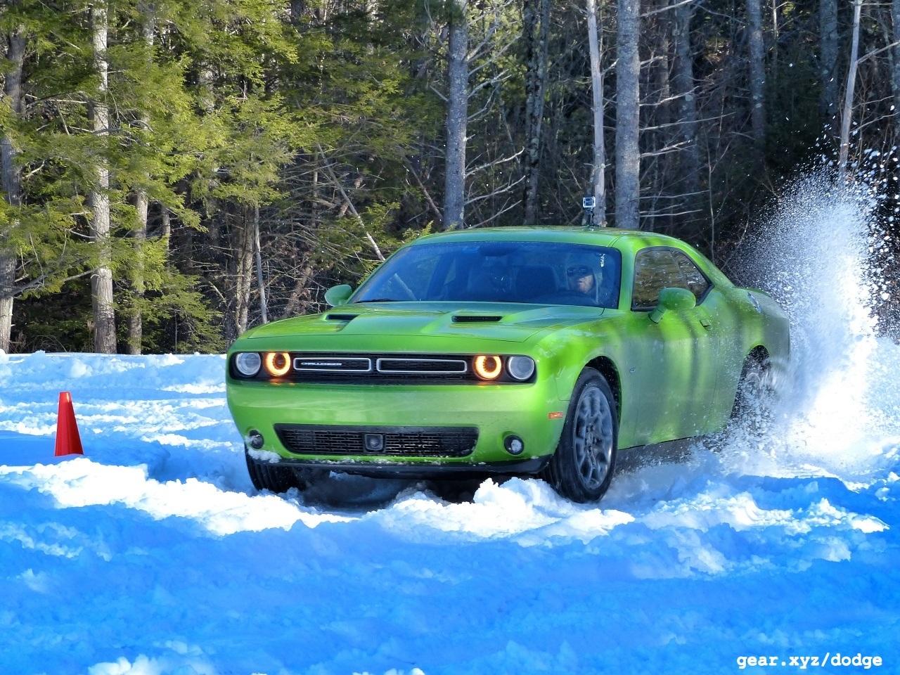 The real test, however, came at Club Motorsports, where five inches of snow had already been spun into stiff, slushy ridges by the drivers who'd previously sampled the tight confines of the drift course. Under the watchful eye of the Team O'Neil rally school (also based in New Hampshire), I slid, slammed, and skidded the Challenger GT around and around with the traction control banished and the Dodge's ponderous momentum informing every wheel and throttle input. Under such slippery conditions the more modest horsepower produced by the V6 is more of a blessing than anything else, and while the heft of the Challenger was undeniable (think grand touring rather than sport, or even muscle), never once did the AWD system leave me stuck.