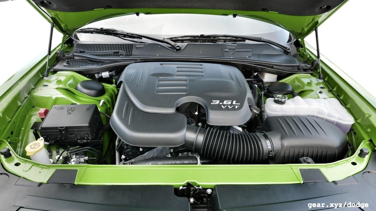 - The 2017 Dodge Challenger GT comes exclusively with a V6 engine. Granted, the 3.6-liter unit pushes out 305 horsepower, but put any visions of V8 rumble and four-wheel smoke shows out of your head.