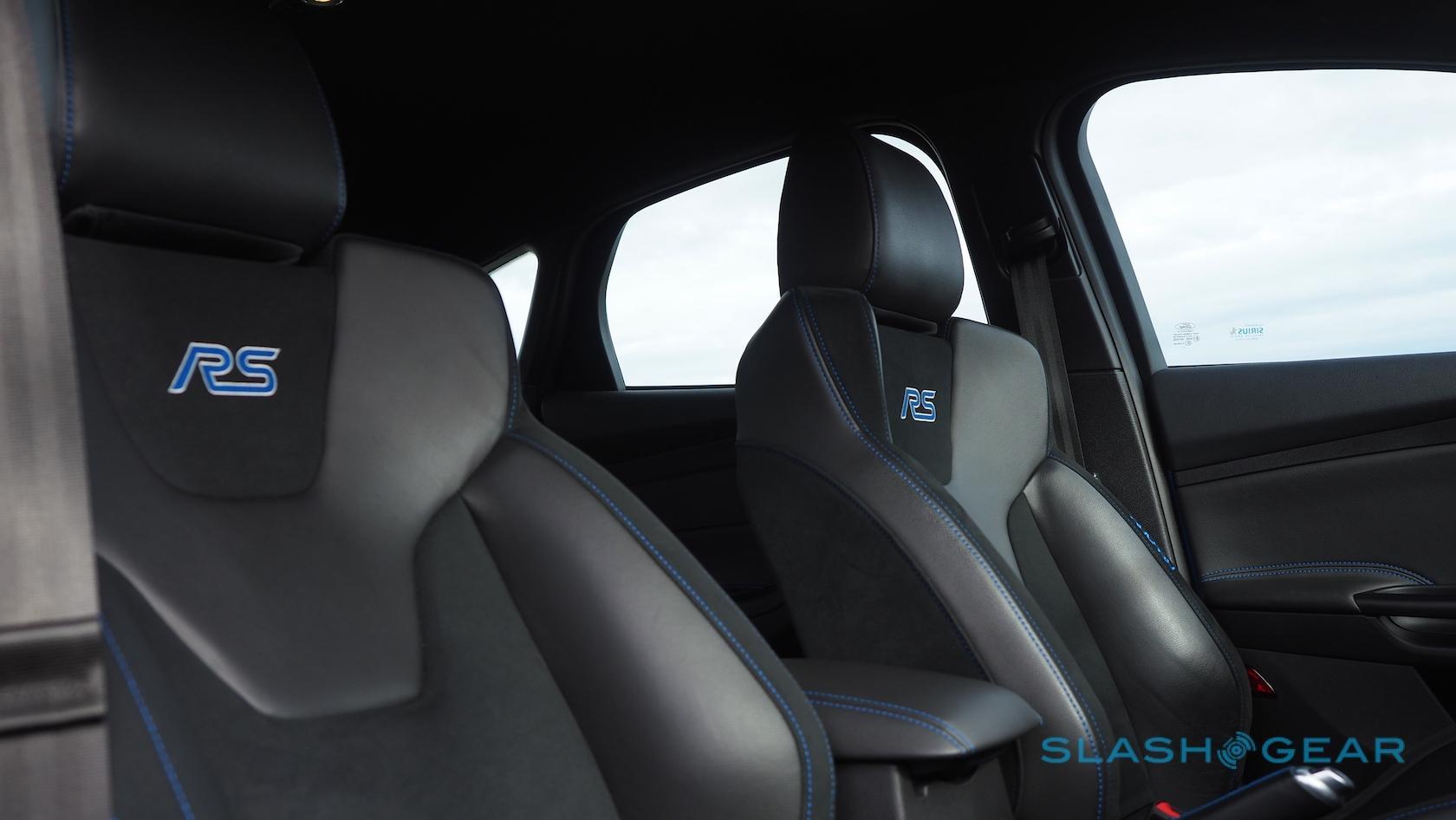 Were it my name on the order sheet, I'd bypass the bright blue paint and opt for Ford's fetching battleship gray. The "Nitrous Blue" finish may be traditional at this point, but it's also catnip to competitive boy-racers and those with blue siren alike. Anyway, the RS has talents enough; it doesn't need to shout about them. Indeed, I'd do as much as possible to keep the car to its $35,900 sticker price, including sacrificing the $2k 19-inch wheels you see here, and the $2,785 RS2 package with its heated front seats and steering wheel, and added navigation.