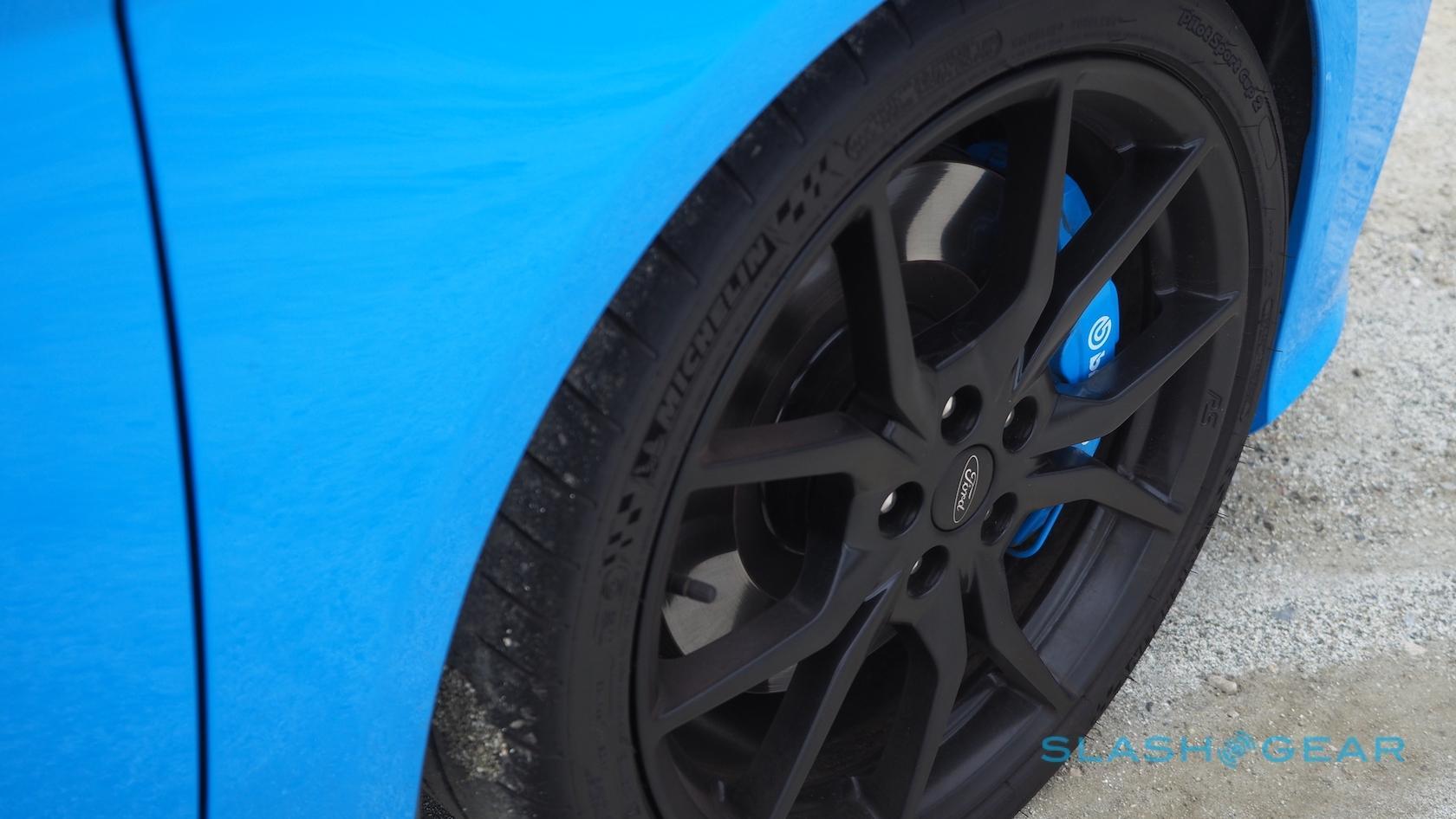 Heading into a corner, and through it, there's a sense that the RS' rear is keen to overtake the front. Ford's drive mode system admonishes you to leave Track and Drift modes to closed circuits, and in Normal and Sport the tail-happy eagerness is left manageable but no less entertaining. Wet roads and the optional Michelin Pilot Sport Cup 2 summer track tires could've been a recipe for, if not disaster, then at least soiling of the Recaro sports seats, but they turned out to be grippy and predictable.