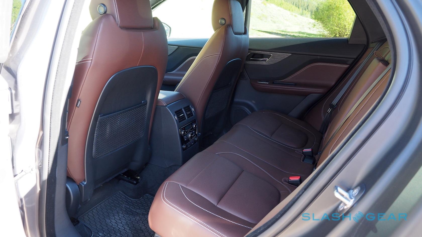 The detailing is sharp, too, with the F-TYPE lending its minimalistic tail-lamps among other things, and that continues inside. The optional Luxury Interior Upgrade Package brings, for $2,200, suede headliners, 4-zone climate control, adjustable ambient lighting, and other niceties. Prestige trim level and above gets leather seats.