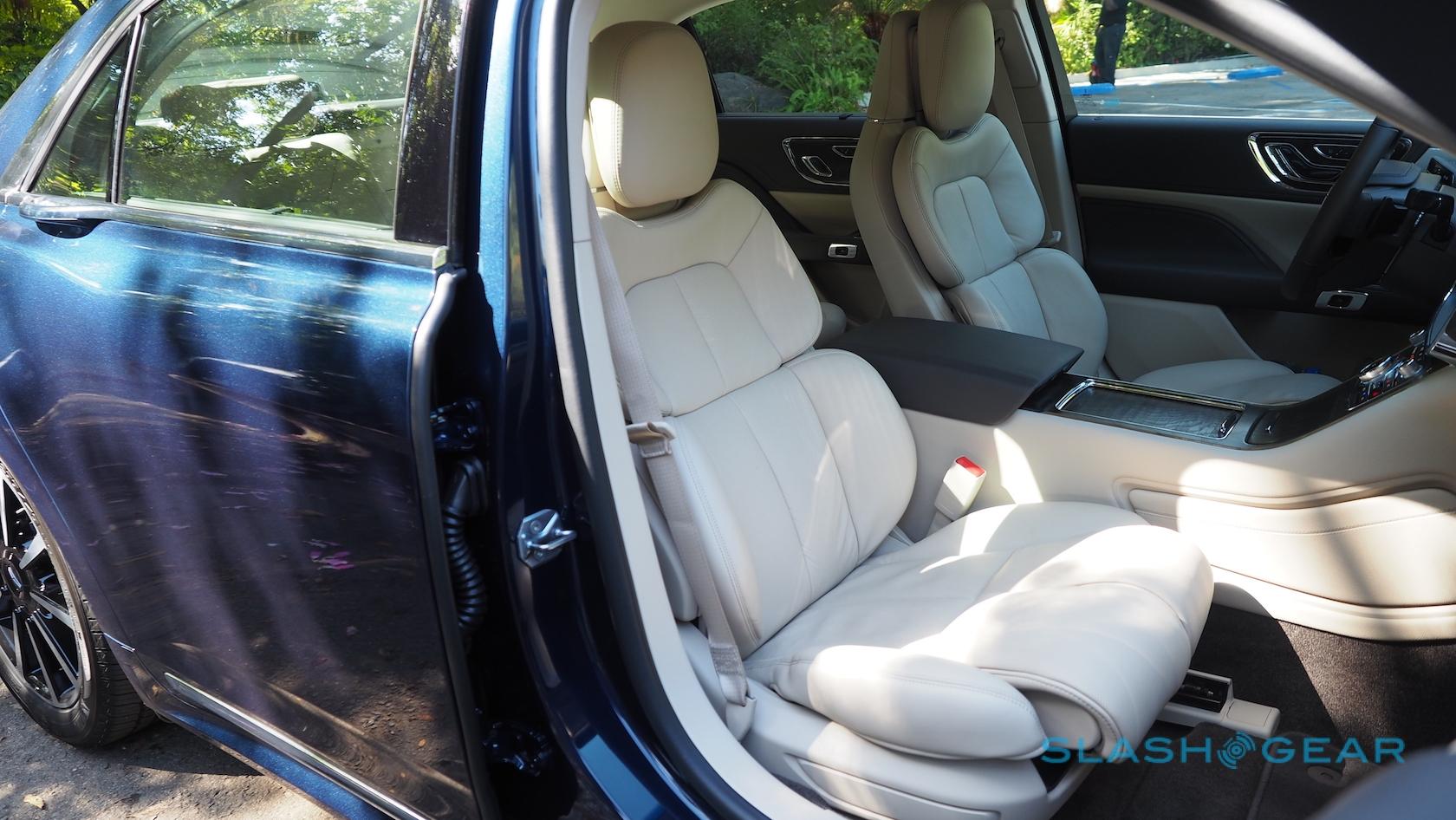 Lincoln's detailing is often exquisite. Nowhere is that more so than the door handles, the company switching to electronic latches. Rather than breaking up the door panels with mechanical ugliness, they're sleek chrome ripples in the metal that runs along the shoulder line. Squeeze the switch inside and the door pops open silently; push it closed, and the latch grabs at the last moment and draws the whole thing shut. That ribbon of metal encompasses the side mirrors too, almost sculptural in their poise.