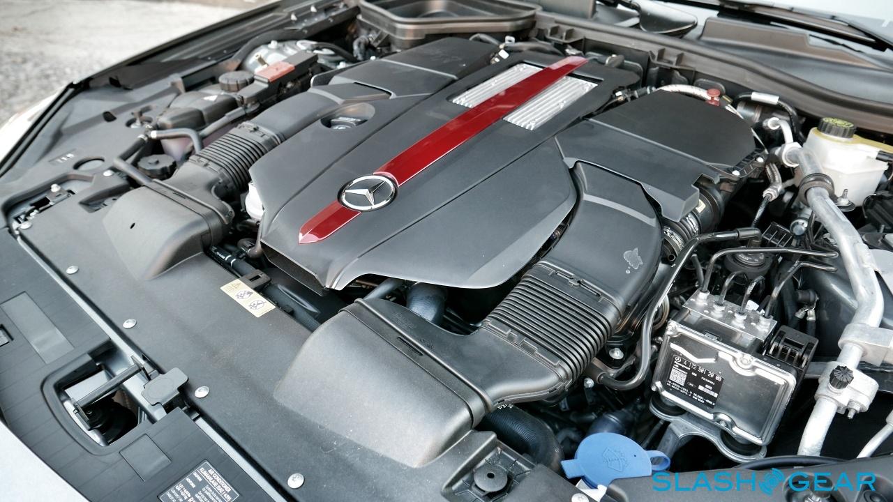 The first being that the Mercedes-AMG SLC 43's motor is only big when it comes to power, because its down considerably in terms of cylinders and displacement when compared to its SLK55 AMG predecessor. Gone is the rambunctious V8 of years past and in its place is a biturbo 3.0-liter V6 that has been tuned to provide 362 horses and 384 lb-ft of torque. Nice numbers, and good enough to eclipse both the Porsche 718 Boxster S and the BMW Z4, but shy of the 415 ponies and 398 lb-ft twist provided by the 5.5-liter unit it replaces. Purists will also be disappointed to learn that the hand-built, one engineer / one engine philosophy that guided past AMG models is nowhere to be found with the SLC 43, as the drivetrain is pulled off the standard production line before being stuffed into the convertible.