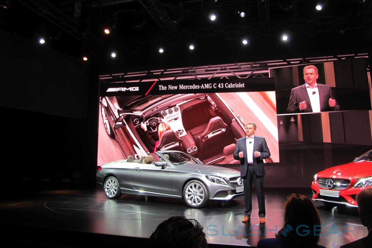 Mercedes-AMG head Tobias Moers introduced the new cars, after a spirited performance from Swedish pop singer Zara Larsson. While the C-Class Cabriolet that rolled out on stage was the 220D diesel-powered model, aesthetically it's identical to the gasoline powered car we'll see in the U.S.