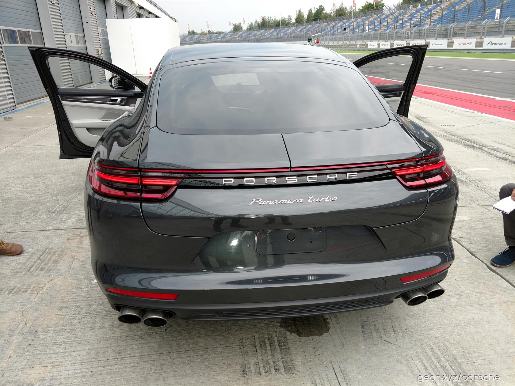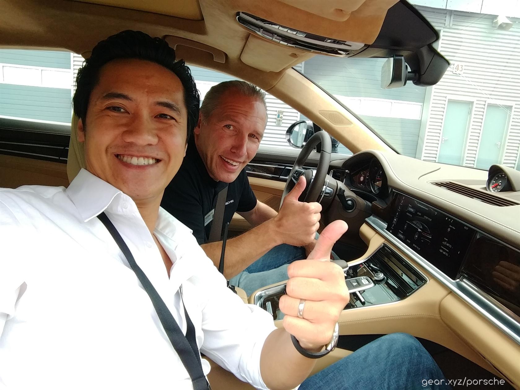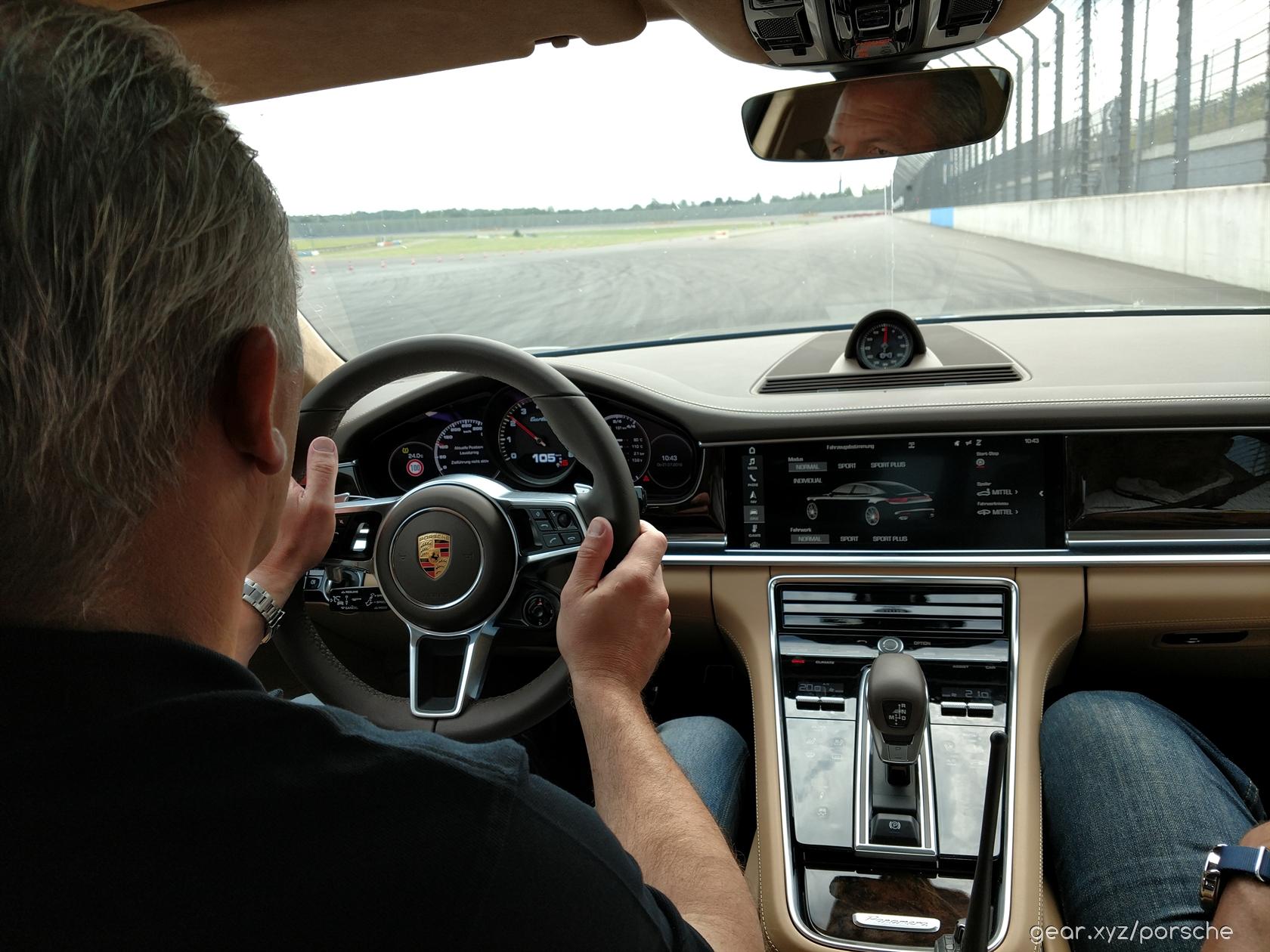 The "Taxi Ride" experience. It was a cab ride I'll never forget: passenger as the Panamera Turbo roared down fast straights, then through hard braking and aggressive cornering at proper racing speeds. I can attest that there was very little to zero body roll, whether I was sitting in the front passenger or rear seat; indeed, the ride was so smooth, I was able to capture the experience while hand-holding a camera phone.