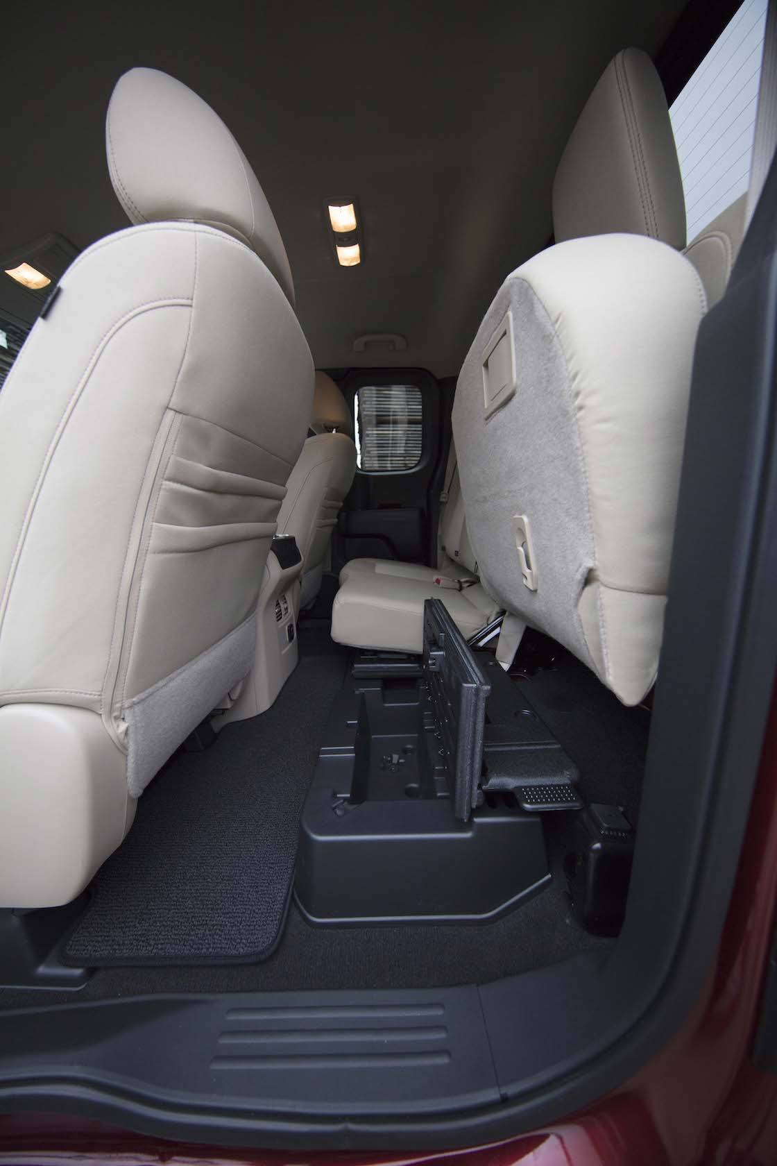 That's if you opt for the three-seat front bench; two regular seats are optional. In the back, there's a 60/40-split bench, but you can opt to have Nissan remove it and replace it with a flat load floor with tie-downs. That way, anything you don't want potentially getting lost, stolen, or wet in the 6.5-foot bed can be securely locked inside.