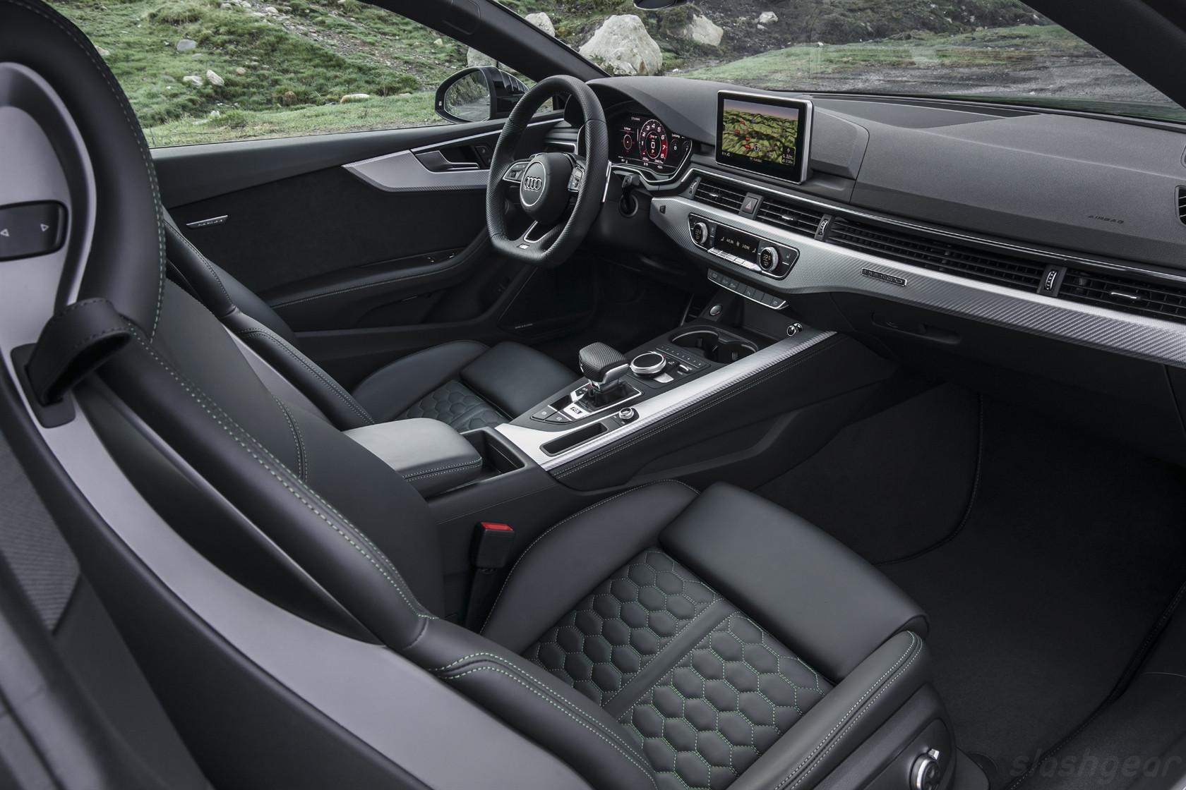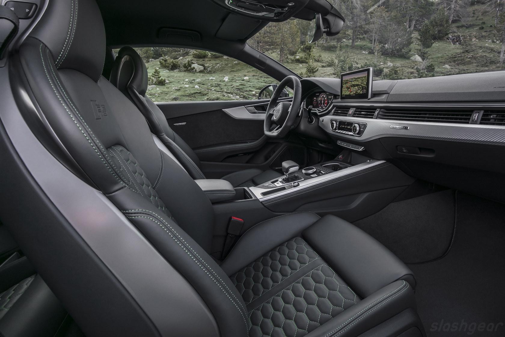 The world's moving towards turbochargers and Audi's not immune to the change, and as a result, we have this new Audi-built 2.9-liter V6 twin-turbo engine. It's at the heart of the 2018 Audi Sport RS 5 Coupe, described by Stephan Winkelmann, CEO of Audi Sport GmbH., as "the gran turismo among the RS models from Audi Sport." That means "elegant aesthetics with high everyday usability," something I got to test out in full on the roads of Andorra.Normally I wouldn't write up a review of a first drive car, but this RS 5 Coupe drive was no typical program. The challenge started with choosing a car, though that proved to be a no-brainer given that the new halo color is Sonoma Green Metallic. Unlike the gray with black optics package, or red with aluminum exterior trim, the green and black optics took some time to grow on me.It's a shade of green much darker than the brighter hue that helped distinguish the new RS 3 that we drove a few months back in Oman. That being said, a few hours in and out of the car driving towards Andorra, it grew on me. Would I buy the RS 5 Coupe in this color? I can't quite say. For that matter, would I buy the RS 3 in the bright green? I'm not sure about that either. While they're both unique for each car, I'm not sure how well they'll age over time. The white was a great looking color option while the blue felt muted in a way that hid much of the new character lines. That leaves gray, and while it might seem like a too-safe choice in reality it looks absolutely gorgeous. Pair it with the US-only black optics exterior trim option and you've got a car that's going to age exceedingly gracefully in the years ahead.The RS 5 embodies Audi's new design language, spearheaded by Chief Audi designer, Marc Lichte. Other than the roof, hood, and trunk lid, the RS 5 Coupe doesn't share any other body components with the regular A5 and S5 cars. The fenders are 0.6-inches wider on both sides, with larger air ducts and a shallower and wider honeycomb-insert grille. These design cues are all inspired by the Audi 90 IMSA GTO, though bolder "quattro" badging, the subtle boot deck-lid spoiler, and two signature oval tailpipes are very much modern Audi.https://www.youtube.com/watch?v=6oZO0VLs-P0So, too, are the underpinnings. The 2018 RS 5 Coupe is built on the MLB EVO B9 platform, also found at the core of other Audi models including the Q7, A4, Q5, the A5 family, and even the new A8. Weight savings include 68 pounds from the new engine – codenamed EA389 – which is significantly lighter than the old V8, and 33 pounds from the bodywork; in total, it's 132 lbs less than the outgoing model. The trim I drove was fitted with a carbon fiber roof, too, contributing an additional 6.6 lbs cut, but unfortunately that won't make it stateside, possibly because it doesn't play nice with the moonroof Audi thinks American buyers demand.Forget the carbon fiber, though, because this new engine is all about horsepower and torque: 450 HP and 600 NM (453 lb-ft.) respectively, with a wide peak torque range running 1,900 to 5000 RPM, and a 6,500 RPM redline. Fans of the last-generation V8 may miss that engine's much higher 8,500 RPM limiter, mind. Still, there was never a time when I felt like I needed more grunt, regardless of the gear I was in. Audi claims a 3.9-second time for 0-62 mph, and while my opportunity to test this out wasn't scientific, the RS 5 Coupe certainly felt more than capable of that.https://youtu.be/ZdJUbFEMX88Tick the RS Dynamic Package, meanwhile, and you get an increase in a top speed to 174 mph, along with dynamic steering, quattro with sport differential, RS sport suspension plus with Dynamic Ride Control (DRC), and Audi Matrix LED headlights. Frankly, for somewhere in the ballpart of $3k I'd say it's a must-have for any RS 5 Coupe buyer. Less essential, but no less desirable for all that, is the $6k Dynamic Plus Package which adds a massive pair of 15.7-inch carbon ceramic brakes up front, a carbon-fiber engine cover, and tire temperature and pressure display.As Audi's range expands, it can be hard to keep track of how the difference cars compare. At first glance, for instance, it looks a little strange that the S5 has a slightly larger, 3.0-liter engine. While there's 0.1-liters less displacement in the RS 5 Coupe, it does gain a whole extra turbo in the process. That, Stephan Reil, Head of Technical Development for Audi Sport, says was done for a number of reasons many of which would only appeal to hardcore engineers, but it basically comes down to burning a better mixture of air and injected fuel in the combustion chambers. "The heads remain the same, the roof of the compressor is the same," Reil explains, "but the piston and piston geometry working in conjunction with the reduced bore results in a better burning scenario."Maximum turbocharger boost is 0.95, and as a result the new engine is on par with the outgoing naturally aspirated 4.2-liter V8. It only managed its 450 HP peak between 5,700 and 6,700 RPM, after all. Admittedly, there's more lost along the way than just two cylinders: there's also the distinctive noise of a V8. Instead, as it did with the TT RS, RS 3, and A5, Audi added a sound actuator at the base of the windshield. Downshifts get the snap and crackle you'd hope for, while the pop of the exhaust still comes through the tailpipes, not through the speakers. Put bluntly, the magic behind what Audi has done to build this emotional connection to the new engine is nothing short of fantastic.It's also allowed for more tonal tuning. "It's not the same as we have it in the A-segment with the 5-cylinder, it's a little louder," Benjamin Holle, of Audi Sport RS 5 Marketing told me, "but this is a B-segment car, geared more toward adults." To the casual listener, I suspect most won't notice the lacking cylinders compared to the V8; it's only the subtle vibrations that really give things away. "Ninety-Nine percent of what you hear comes from the engine and the exhaus