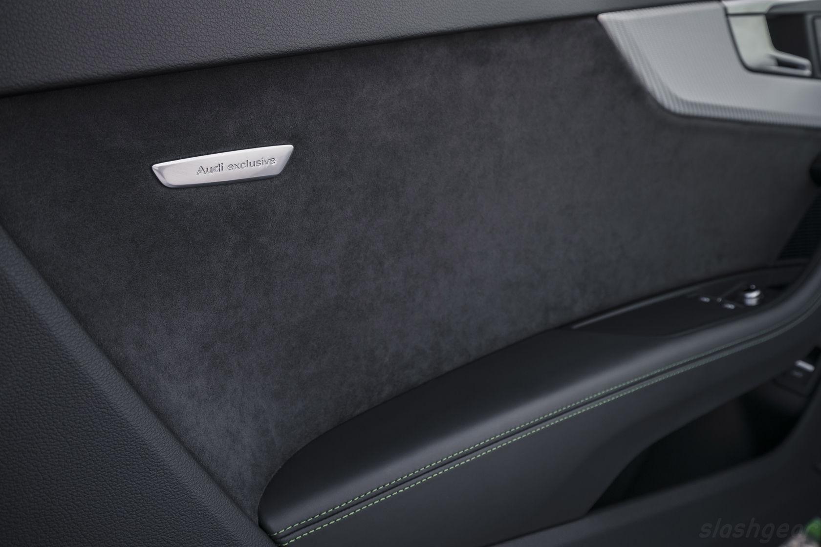 As for that cabin, if you opt for Sonoma Green Metallic paint it comes with black Nappa leather with matching stitching color in a honeycomb pattern. They're combined with open-weave carbon fiber, while Audi gets the usual kudos for the authenticity of its materials at all the key touch points. Case in point are the climate control buttons: their brushed aluminum feels classy, and the touch-sensitive levers add a whole new dimension of sophistication that delights in daily use.
