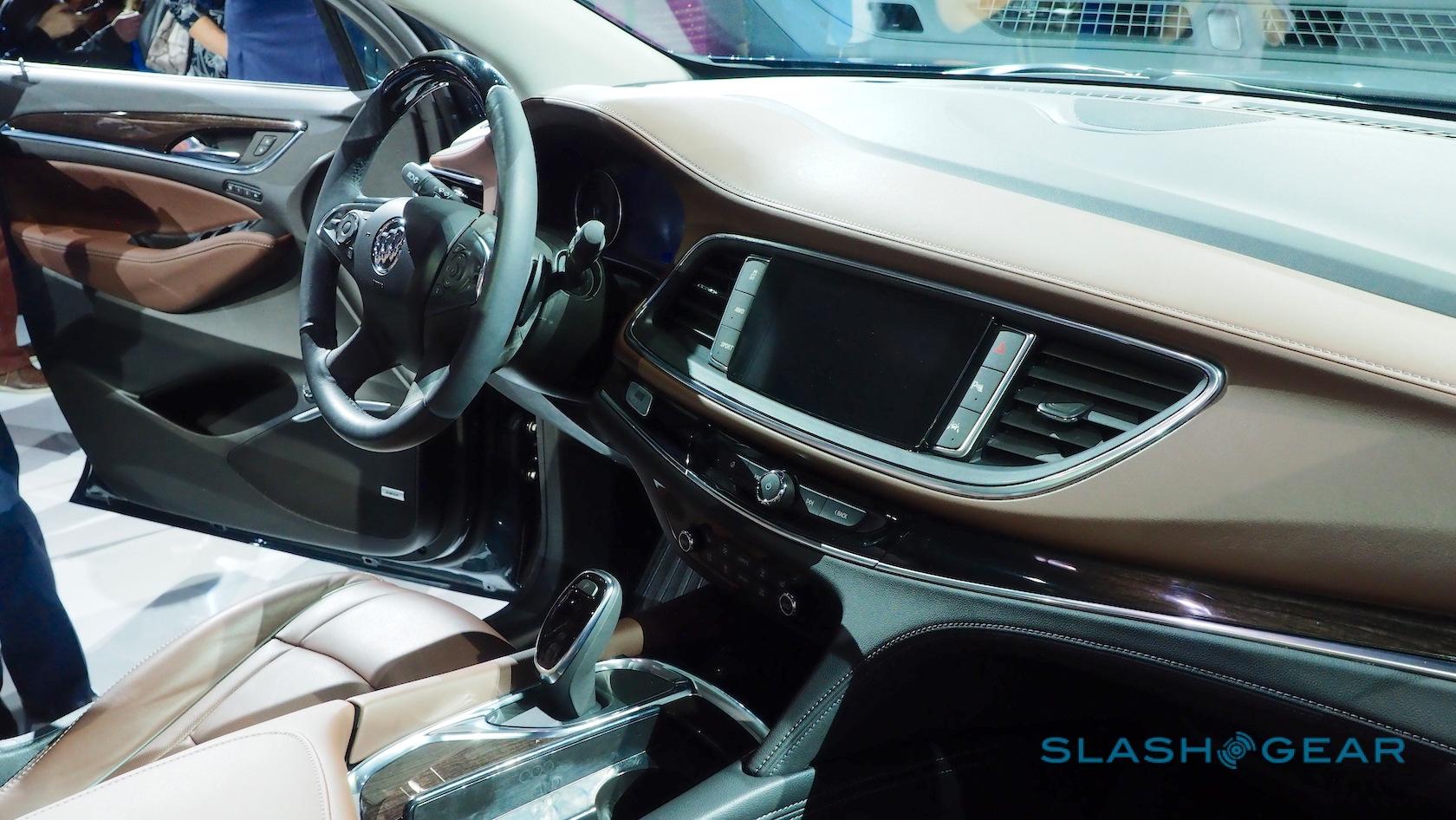 Buick has thrown a fair amount of technology at the SUV, too. Outside, there are more than 100 LEDs, including plenty in the projector headlamps and tail lamps. Buick is using Evonik Acrylite for the clusters, which promise more consistent lighting that both looks better and performs better in low-light situations. Adaptive cruise control and full-speed aytomatic braking are on offer, and there's continuously variable real-time damping plus a Sport mode for more spirited drivers.