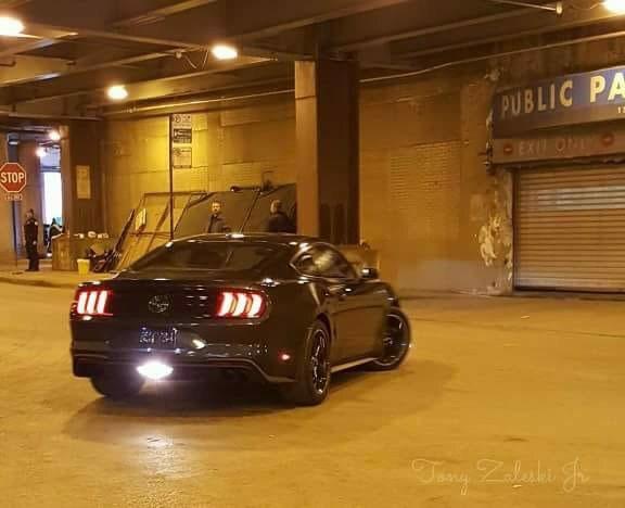 The website claims that its sources say that the special Mustang was spied under a white sheet as it was escorted down Lower Wacker Drive in downtown Chicago. The car is wearing dark green paint, torq thrust style wheels, and has no 5.0 badges on it.