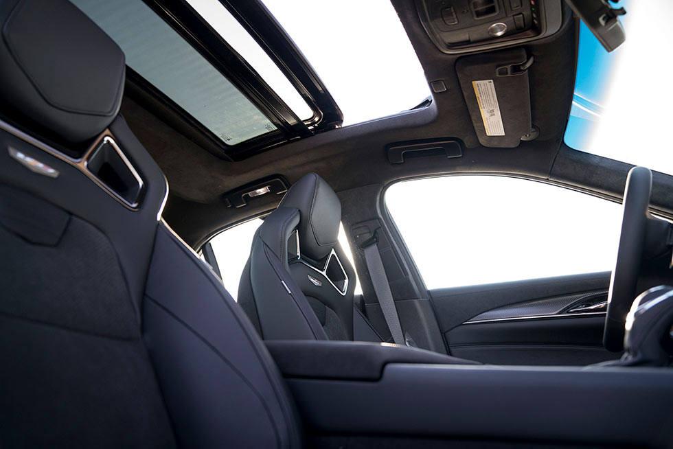 It has a 6.2L V8 engine rated for 640 hp and 630 lb-ft of torque. The fuel system is a direct injection system with cylinder deactivation for fuel economy. The transmission in the cars is an 8-speed sport automatic with Performance Algorithm Shifting. Caddy also fits the car with Advanced Performance Traction management system that was developed through a 2-year engineering program with Cadillac Racing in the Pirelli World Challenge series.
