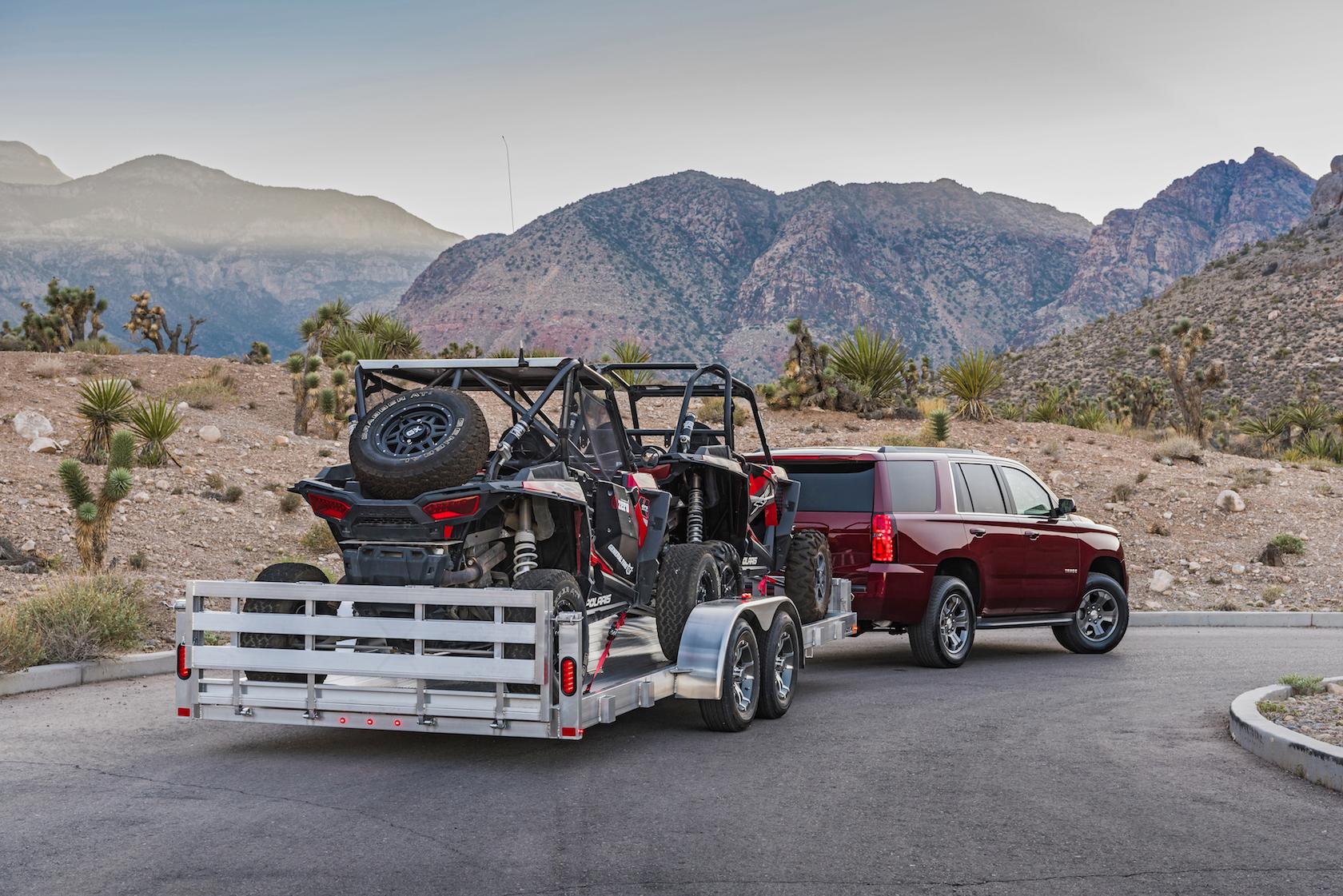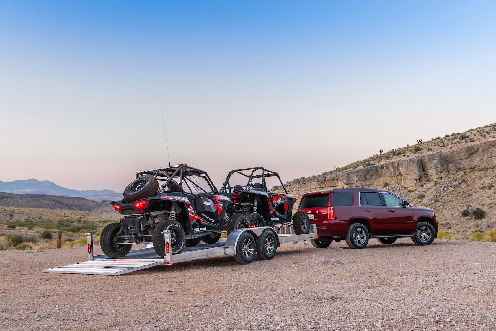 And for the most part, the Tahoe Custom behaved like this job was only half-duty. The transmission hesitated just a bit between 1st and 2nd gear as if saying, "Sure, we can tow these RZRs to the track, or we could tailgate. Or maybe head to the garden center. No? OK, let's do this." The Tahoe worked the rest of the way up through the gears of its 6-speed automatic transmission without a complaint. The suspension gave just a hint of sway, owing to the inevitable tradeoffs between a pure towing setup versus a vehicle that can just as easily haul four buddies, the smoker, and several coolers to the stadium.