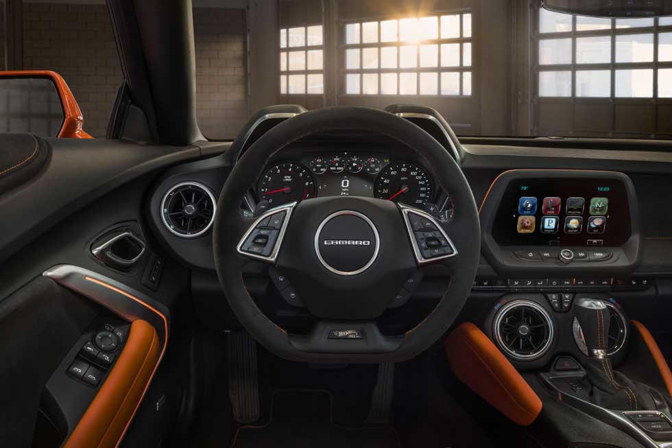 The ground effects are satin graphite and the Camaros will roll on 20-inch forged aluminum wheels with summer-only tires on the SS. The wheels are satin graphite in color. Fender badges will call out the special version and the grille gets galvano chrome inserts.