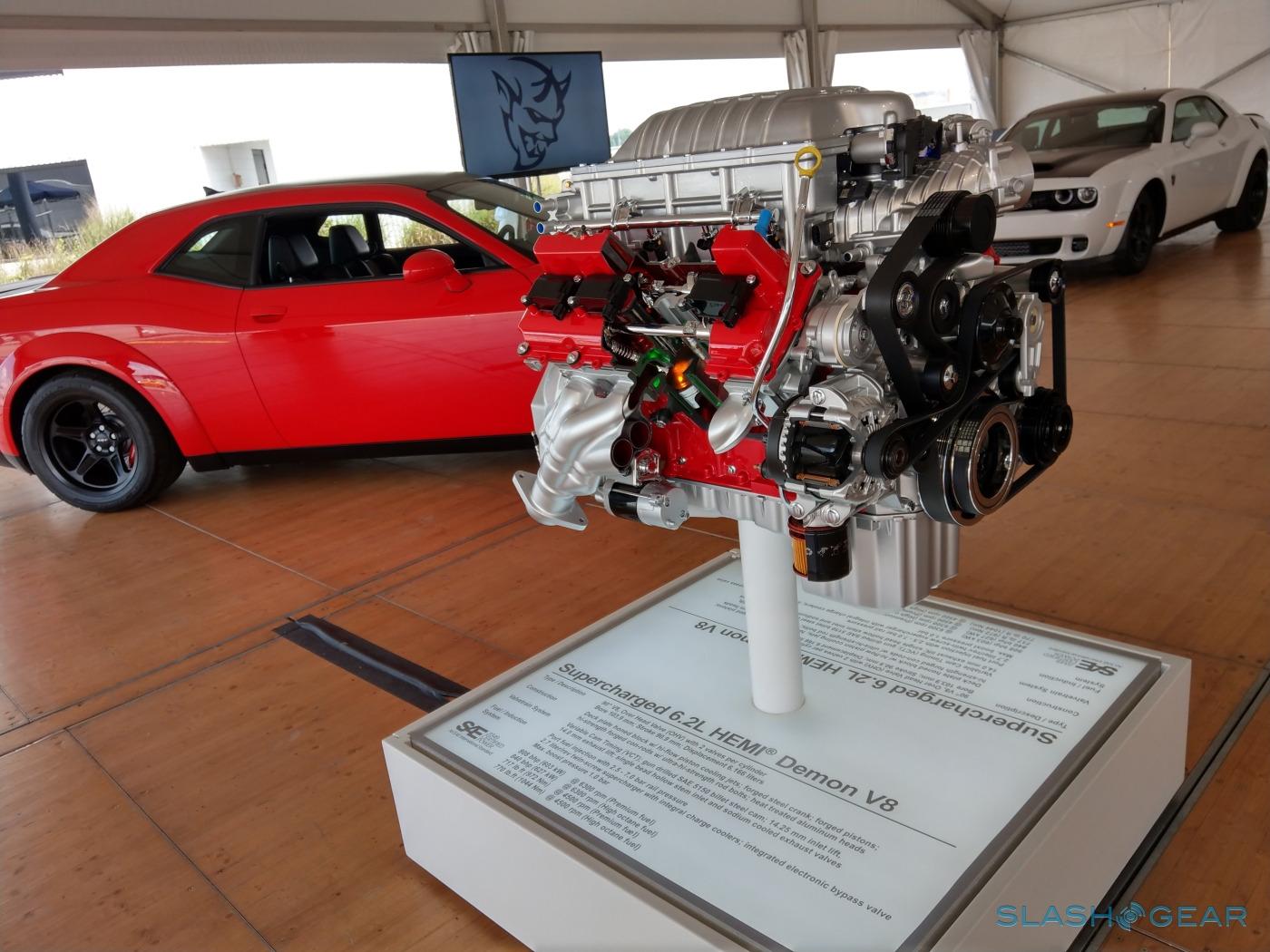 Turning the Hellcat engine into a Demon required twenty-five component changes. Boost pressure is up 20-percent, supercharger capacity increased from 2.4 to 2.7 liters, there were changes to the valvetrain and fuel injection, new pistons, and the conrods and crankshaft peaks increased peak revs from 6,000 rpm to 6,300 rpm. In the process, the supercharger gobbles up more air and fuel than any other production car: there simply isn't another engine in the world that can beat the 6.2-liter supercharged Hemi in fuel flow rate.