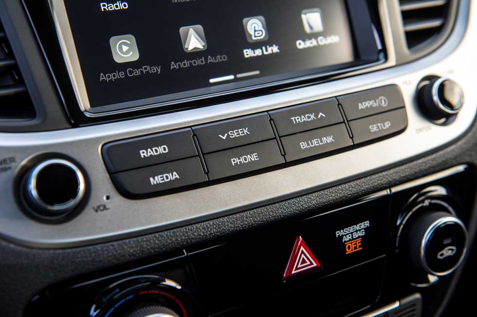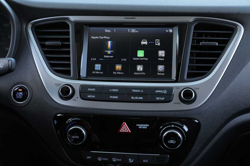 The 2018 Accent has more interior volume than the 2017 Ford Fiesta (which is not coming to the US for 2018) and the 2017 Yaris iA. Hyundai fits the car with a 1.6L GDI Dual-CVVT 4-cylinder engine and a standard 6-speed manual transmission. A 6-speed automatic is an option across the board. That engine makes 130 hp and 119 lb-ft torque. The car also has an available smart hands free trunk release and the optional stereo supports Android Auto and Apple CarPlay. Forward collision avoidance is optional as well.