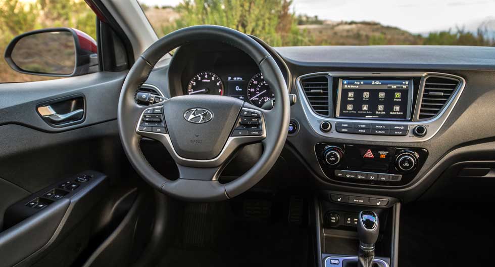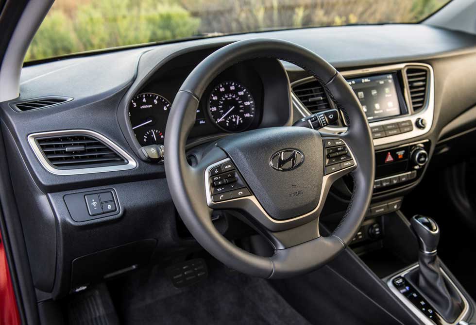 The design of the car is all new and it has available LED daytime running lights. The car rides on 17-inch alloy wheels and has LED turn indicators in the side mirrors. The 2018 Accent is larger and had more interior room than the previous version with 1.2-inches more width, 0.6-inches longer overall, and the wheelbase is 0.4-inches longer.