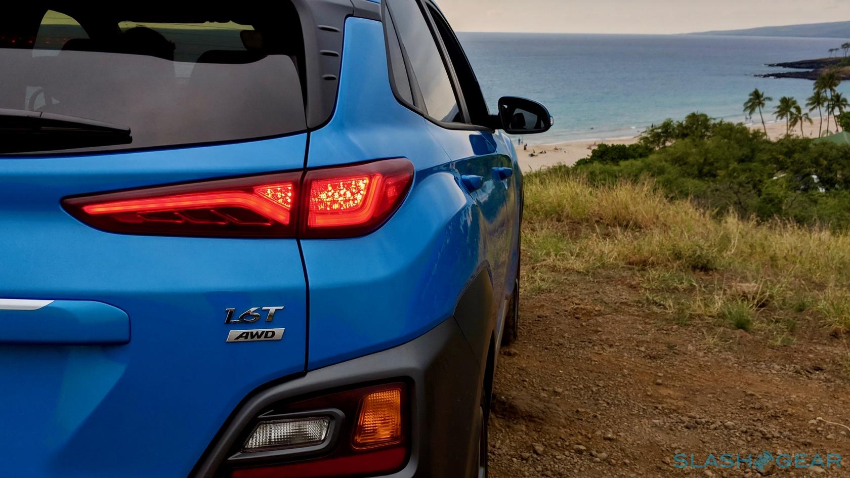 The Kona is offered with a 2.0-liter four-cylinder engine as well as a 1.6-liter turbocharged four-cylinder. The latter is good for roughly 180 horsepower, while the entry-level mill is rated at about 150 horsepower. Transmissions include a six-speed automatic and a seven-speed dual-clutch automated manual, and all-wheel drive is optional across the board.