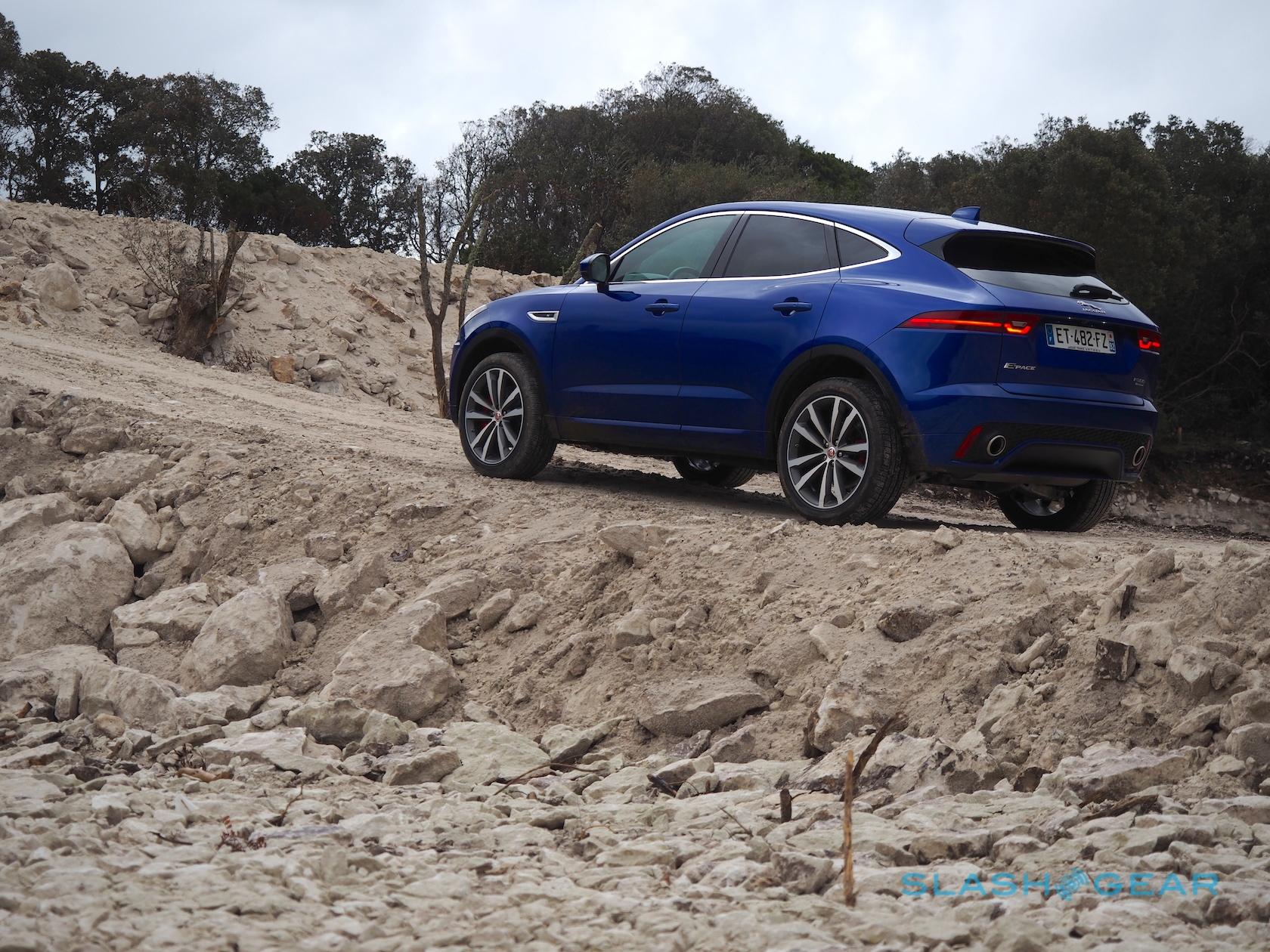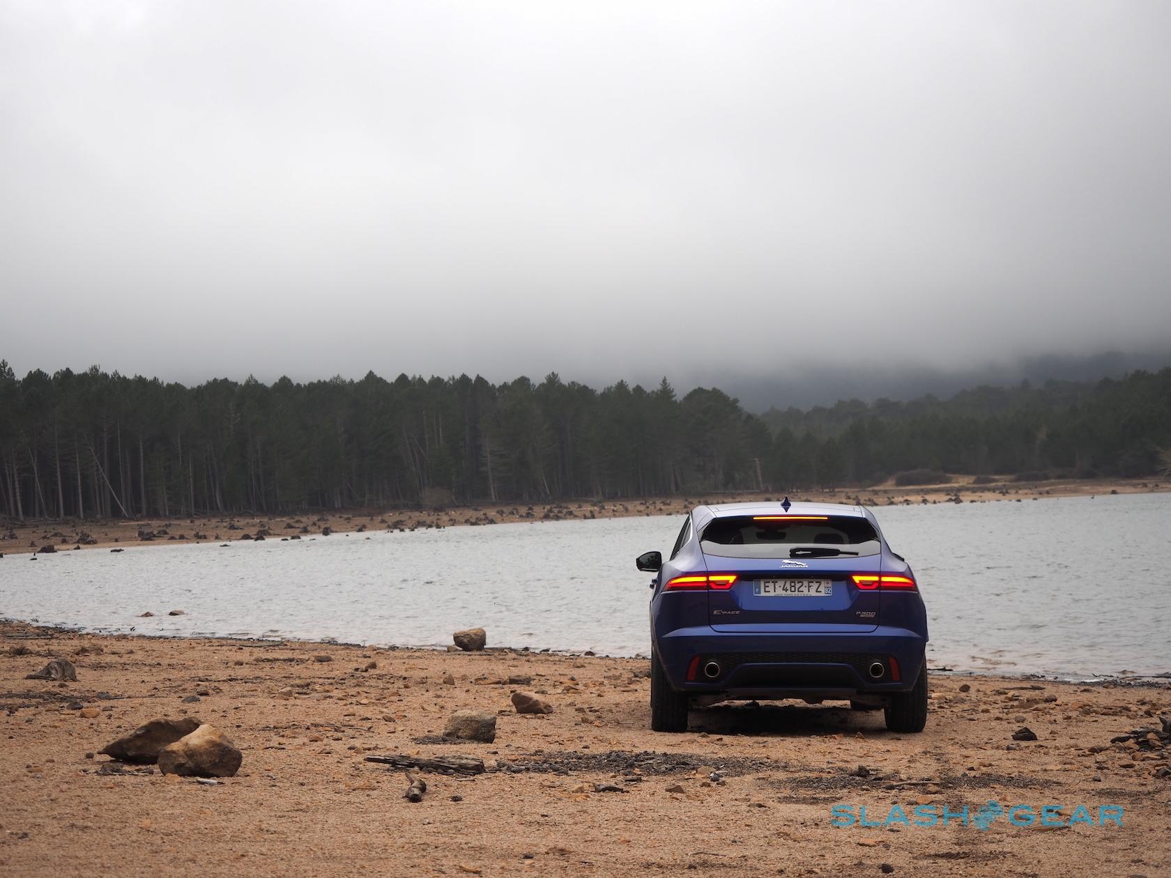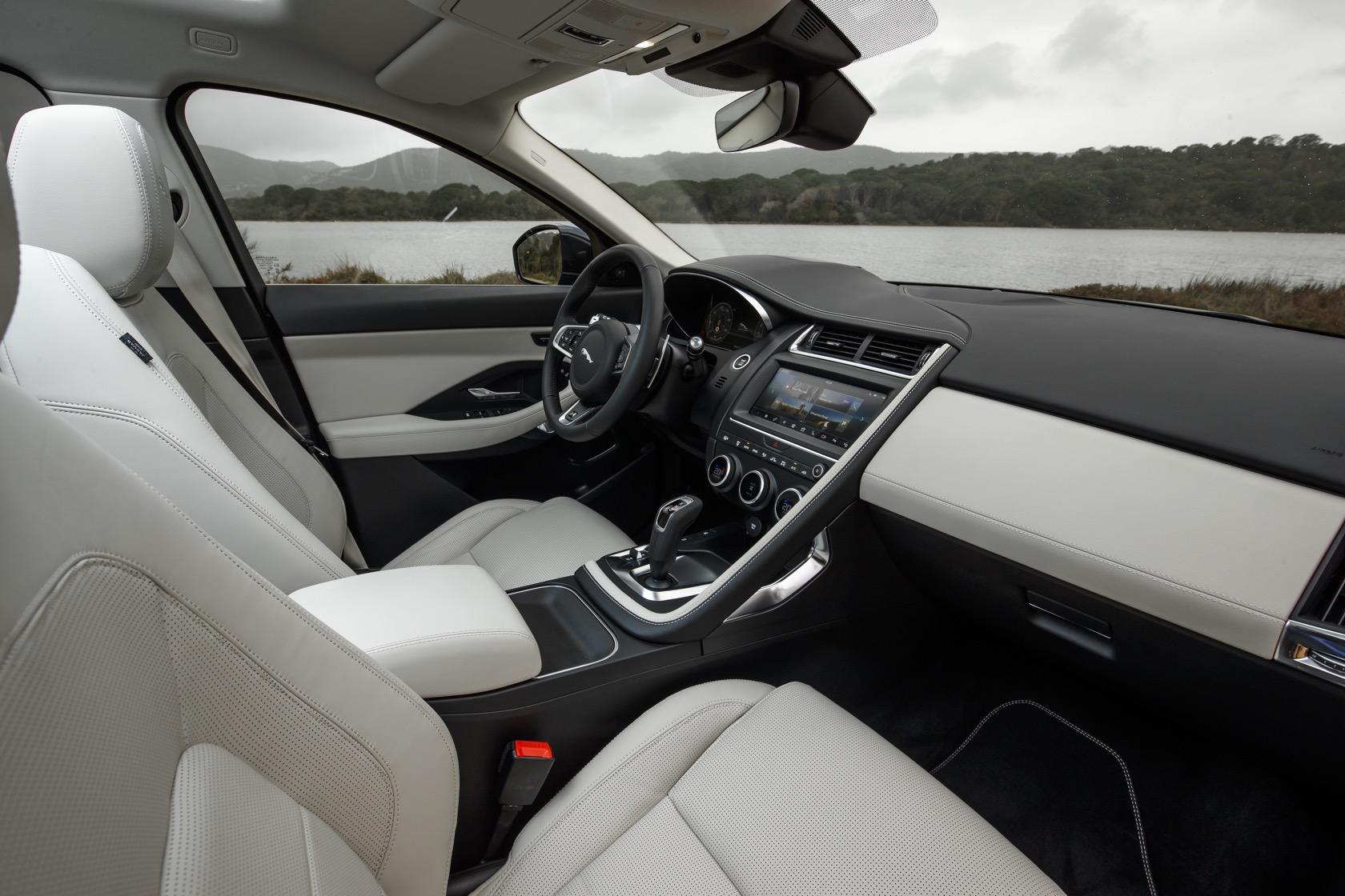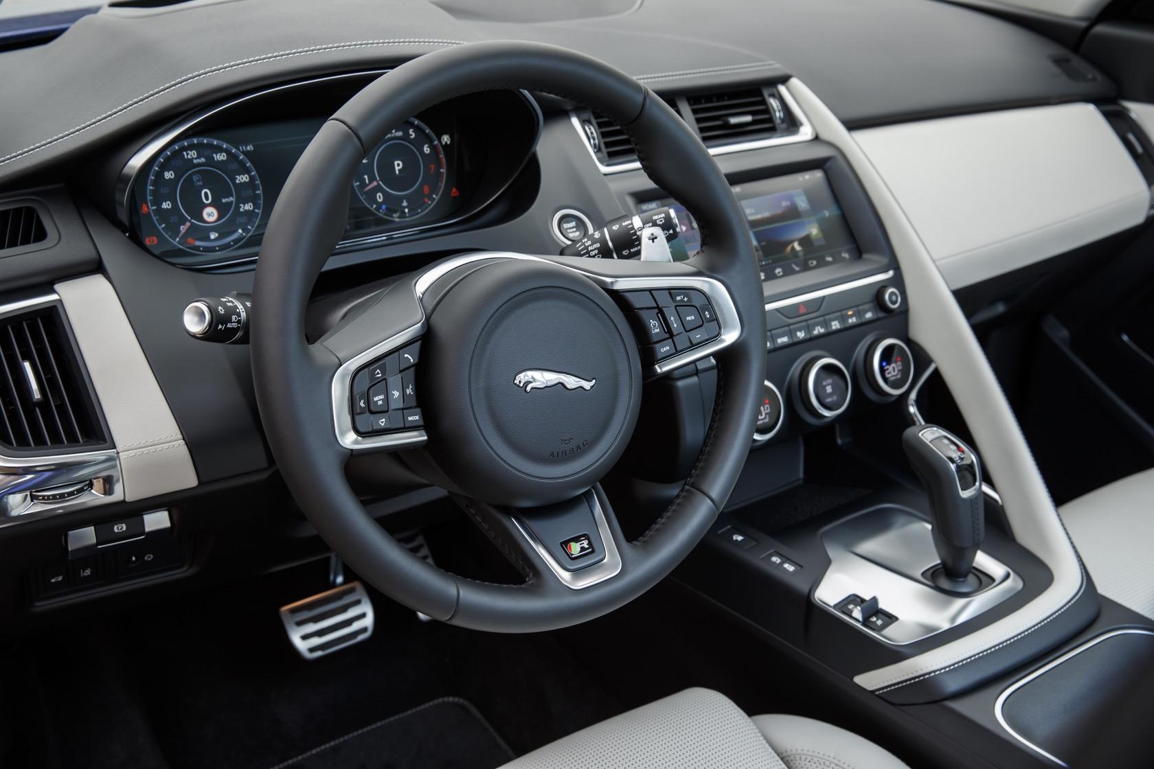 The result is a crossover that wants to be a sports car, and partially succeeds. Certainly, the outside is dramatic, where F-TYPE styling cues abound and sit comfortably with oversized wheels. The interior is a cut above the F-PACE's in visual interest, too.