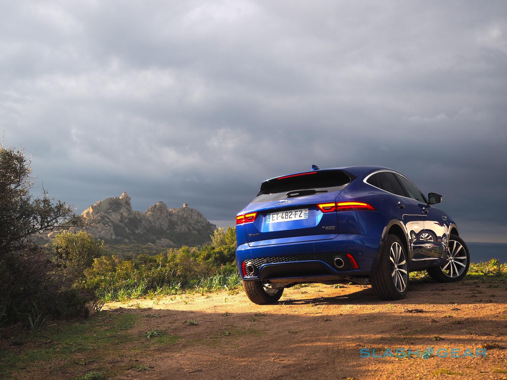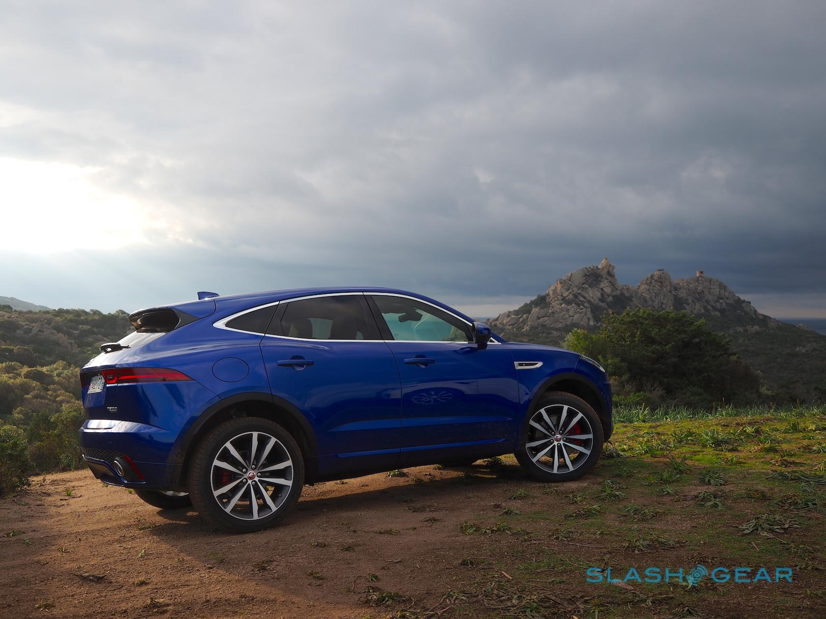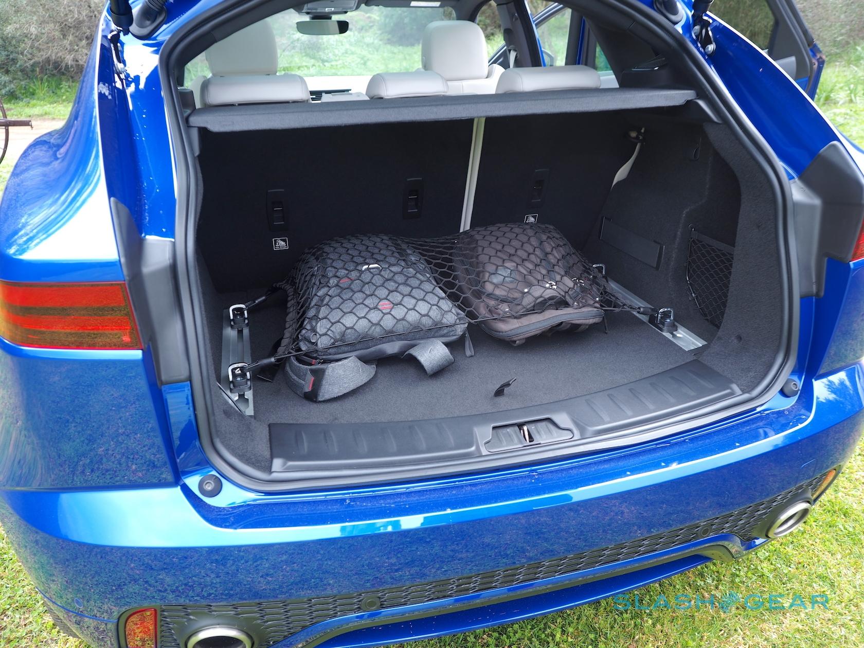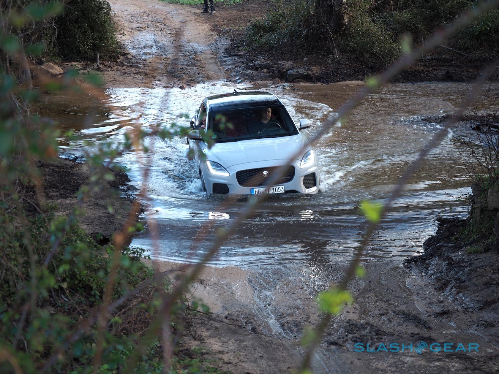 The result is a crossover that wants to be a sports car, and partially succeeds. Certainly, the outside is dramatic, where F-TYPE styling cues abound and sit comfortably with oversized wheels. The interior is a cut above the F-PACE's in visual interest, too.