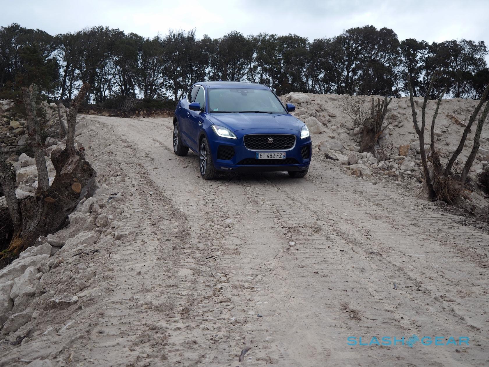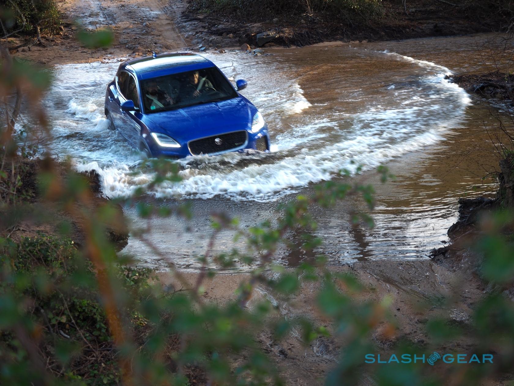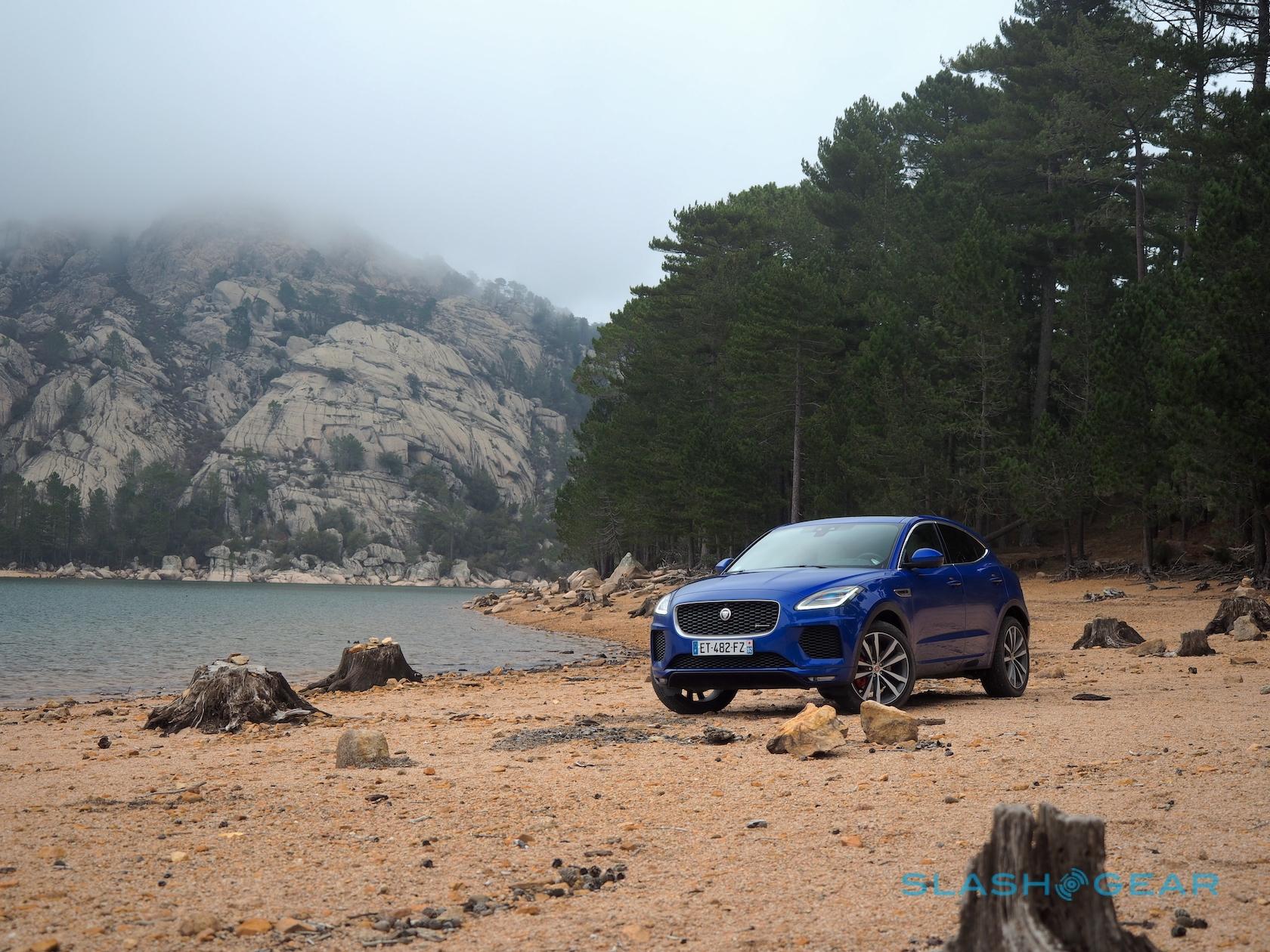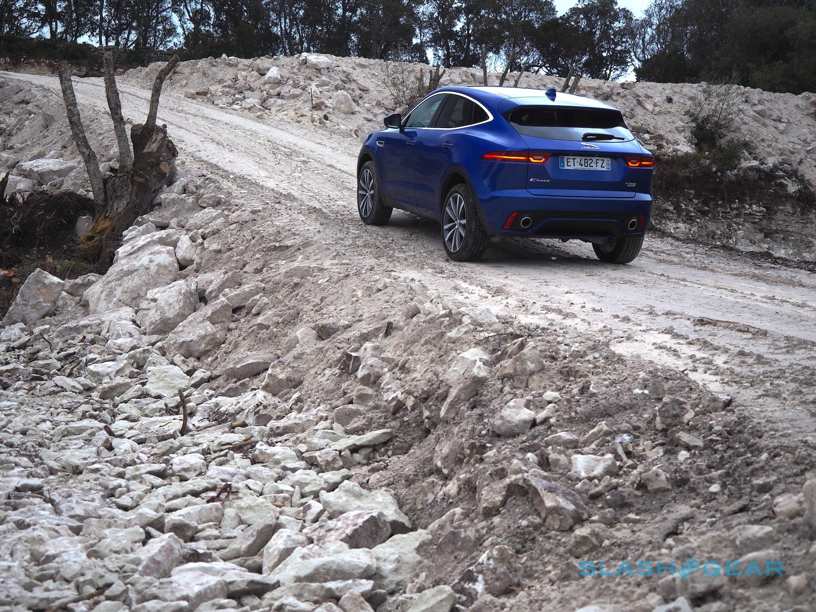 The result is a crossover that wants to be a sports car, and partially succeeds. Certainly, the outside is dramatic, where F-TYPE styling cues abound and sit comfortably with oversized wheels. The interior is a cut above the F-PACE's in visual interest, too.