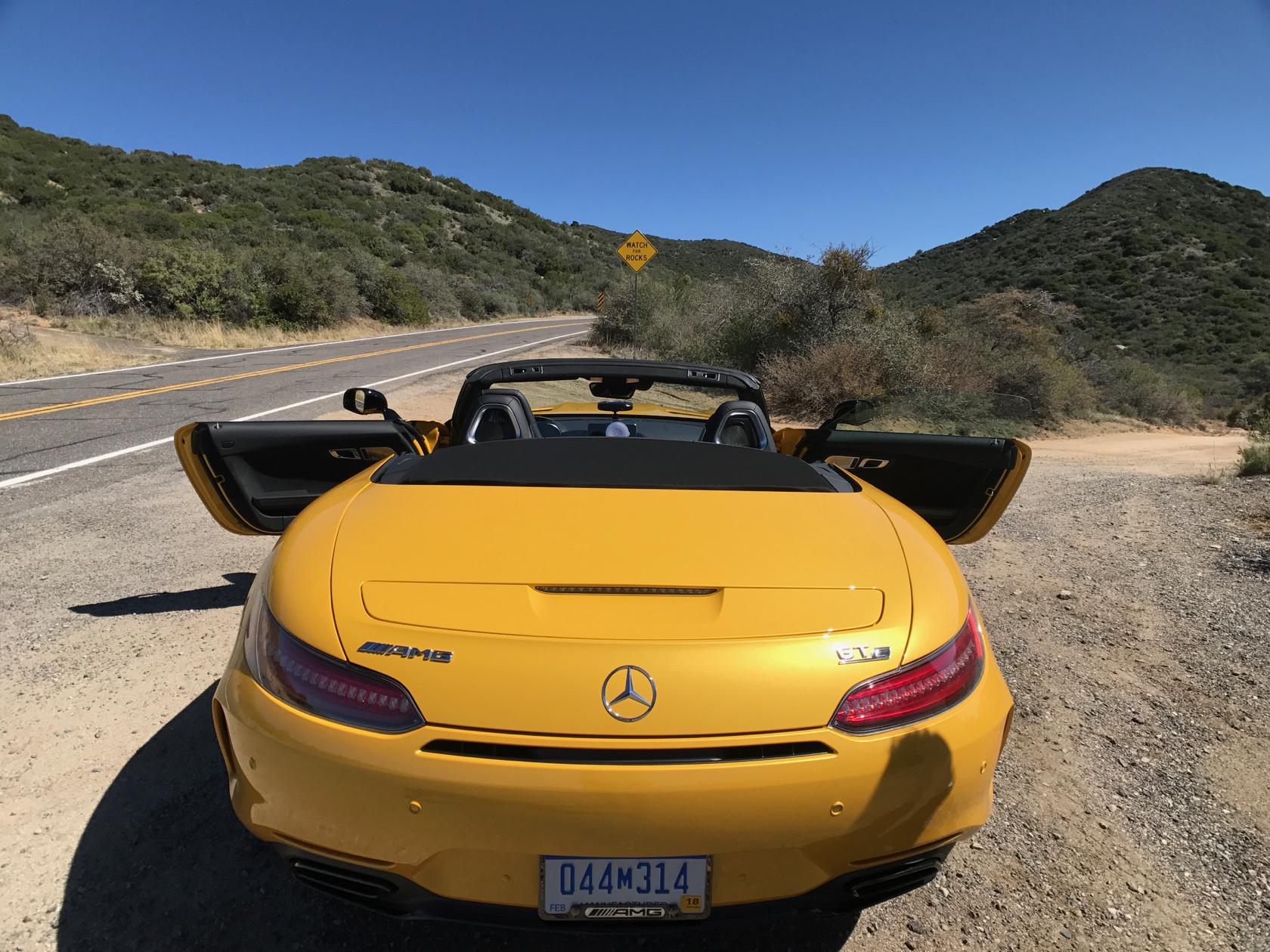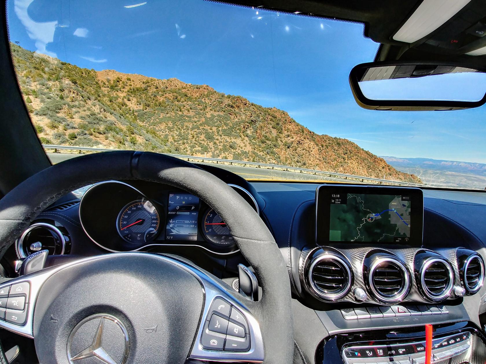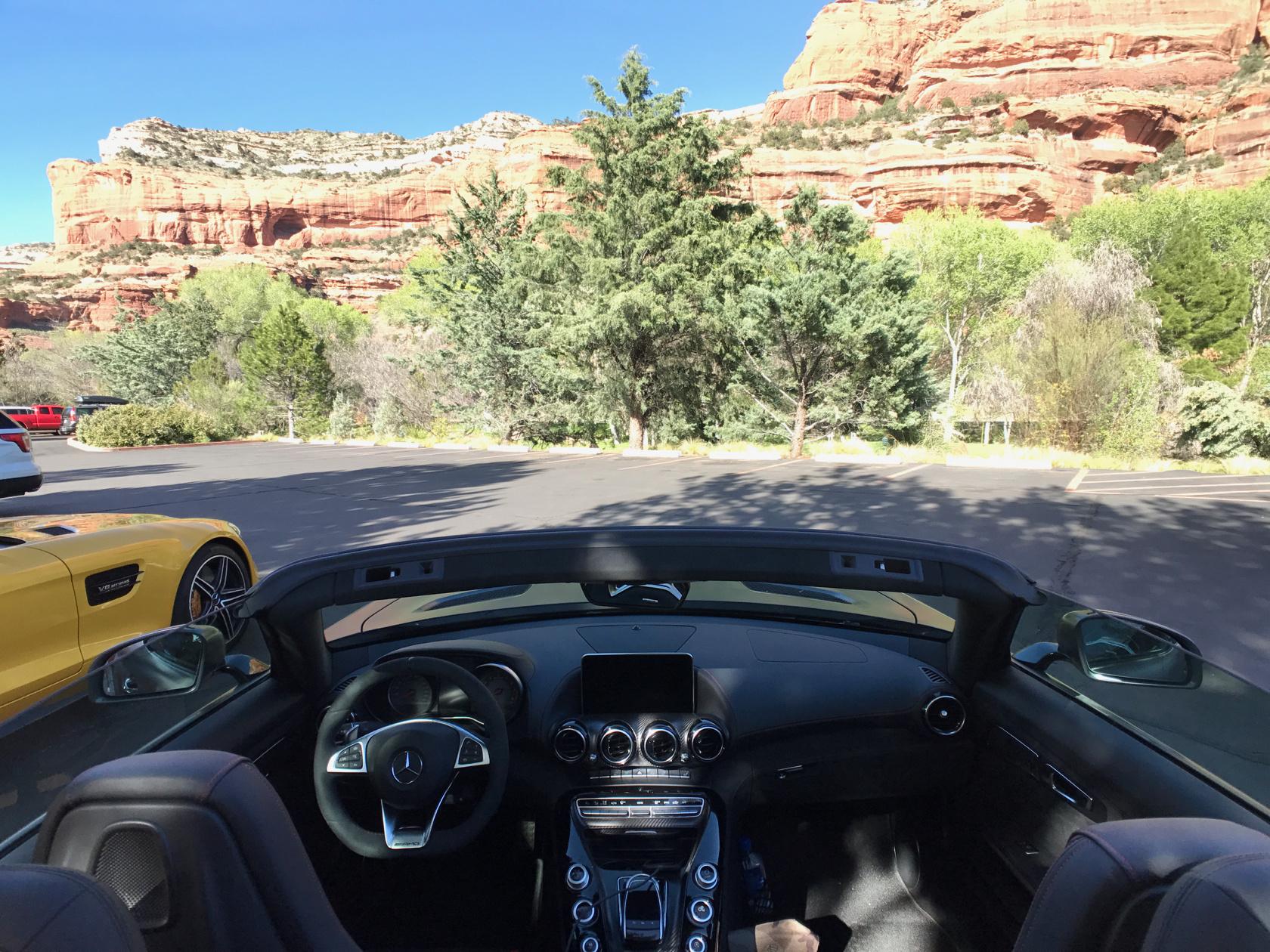 Luckily, my fun in the sun with Mercedes-AMG's new GT C Roadster in Arizona didn't come to a premature end when my driving partner got a speeding ticket. The topless Solarbeam Yellow GT cruiser shot out as though the canyon had just given birth to it... and that happened to be the exact spot where we drove past the state trooper. I sat quietly in the passenger seat as he explained to the officer, "it's this stupid car, it feels like it's going 60..." only to have the officer reply "you're really flying, I clocked you at 90 mph."