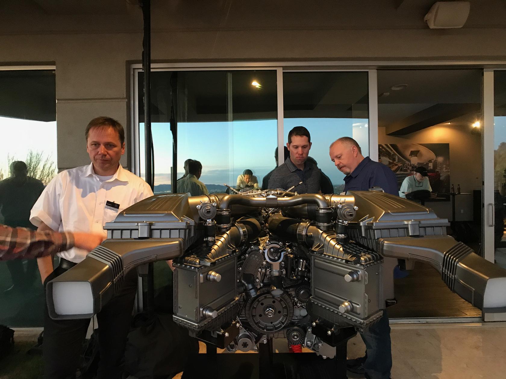 Speaking to Jorg Letzel, Product Management at Mercedes-AMG, he confirmed that the GT C Roadster and GT R in fact share the same transmission. "There's a longer first gear for better acceleration," he explained, "with a shorter 7th gear in order to reach high speed even further, with the same high speed shifting time." Letzel also elaborated on the changes that take place when switching drive modes from Sport+ to Race: "the sound of the exhaust system, shorter shifting time, [and] throttle response time is more sensitive and the steering stiffens up." Depending on the driving mode, "starting from drive mode Comfort to Sport+, the spoiler pops up at 120+ km/h and under 80, it goes down. In race mode, the spoiler pops up at 70 km/h and down below 30 km/hr."
