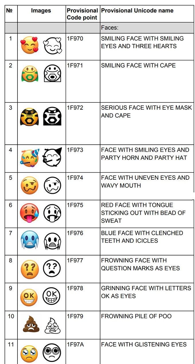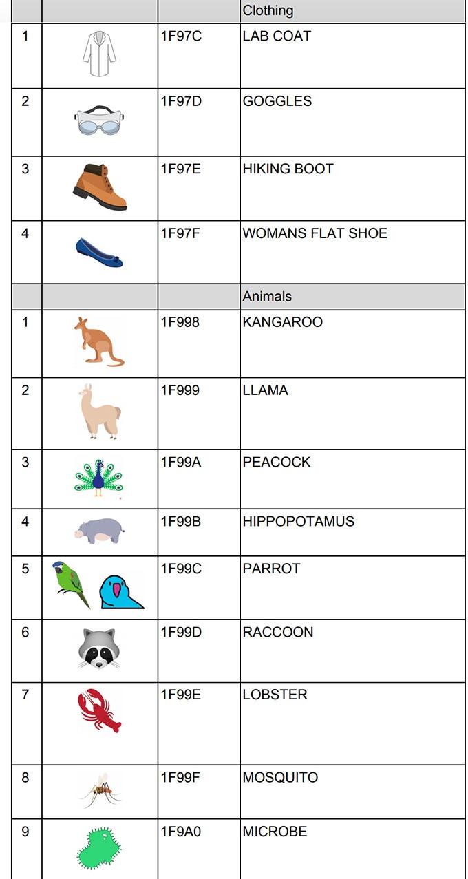 Emojis addicts should keep in mind that this list isn't final yet, so there may be additions or changes between now and 2018. Members of the Unicode Consortium — which include big tech companies like Apple, Google, Microsoft, and Facebook — will have to vote on what characters make the cut, as well as submit artwork for their own takes on each addition.