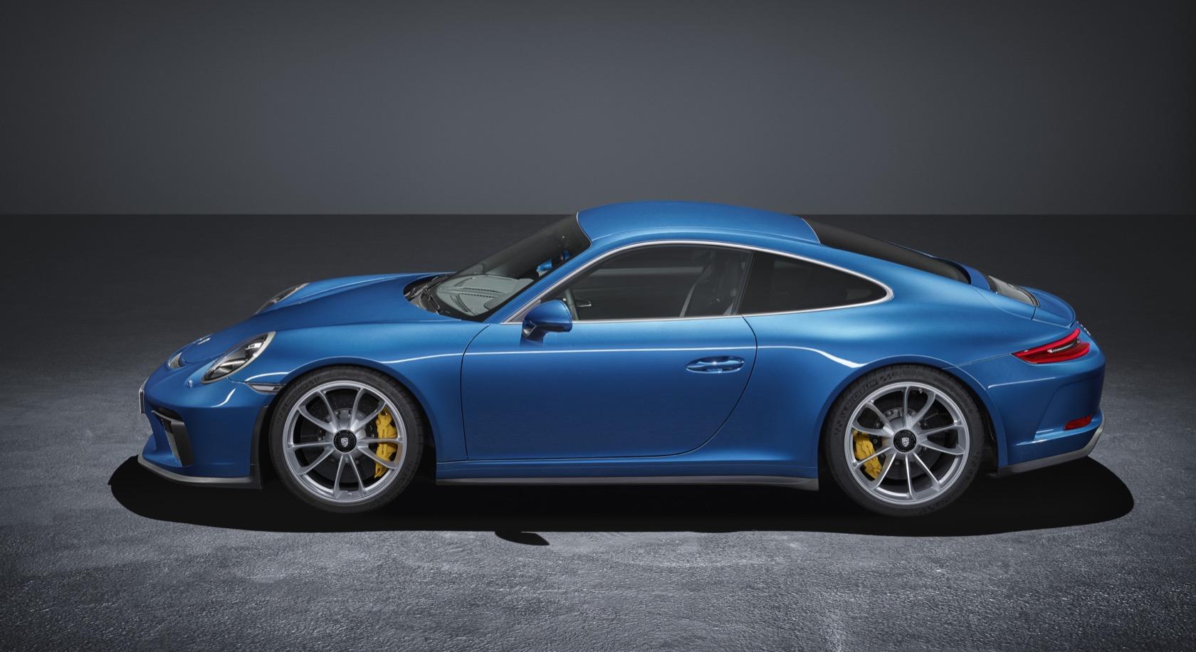 That's down to the history of the name, Porsche suggests. It first offered such a trim on the 911 Carrera RS in 1973, paring back the design to the core and keeping the interior as classic as possible. This new car does much the same, dressing the coupe – including its 1.7-inch wider rear – in the same color options as the regular 911 GT3.