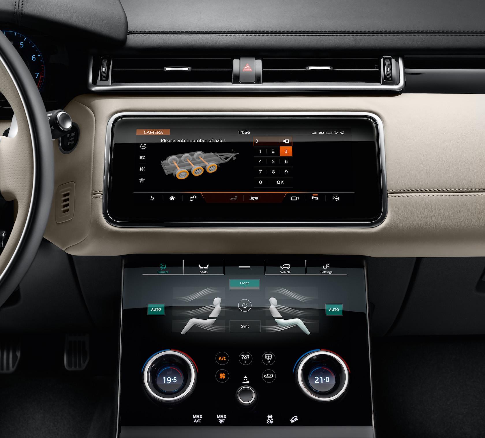 Inside, there's space for five in a minimalistic cabin. Range Rover's new InControl Touch Pro Duo infotainment system puts twin 10-inch touchscreens into the dashboard, along with capacitive buttons and multi-function rotary controllers. A 23-speaker, 1,600W Meridian audio system is an option. The 2018 Velar goes on sale in the US this year, priced from $49,900. European Model Shown