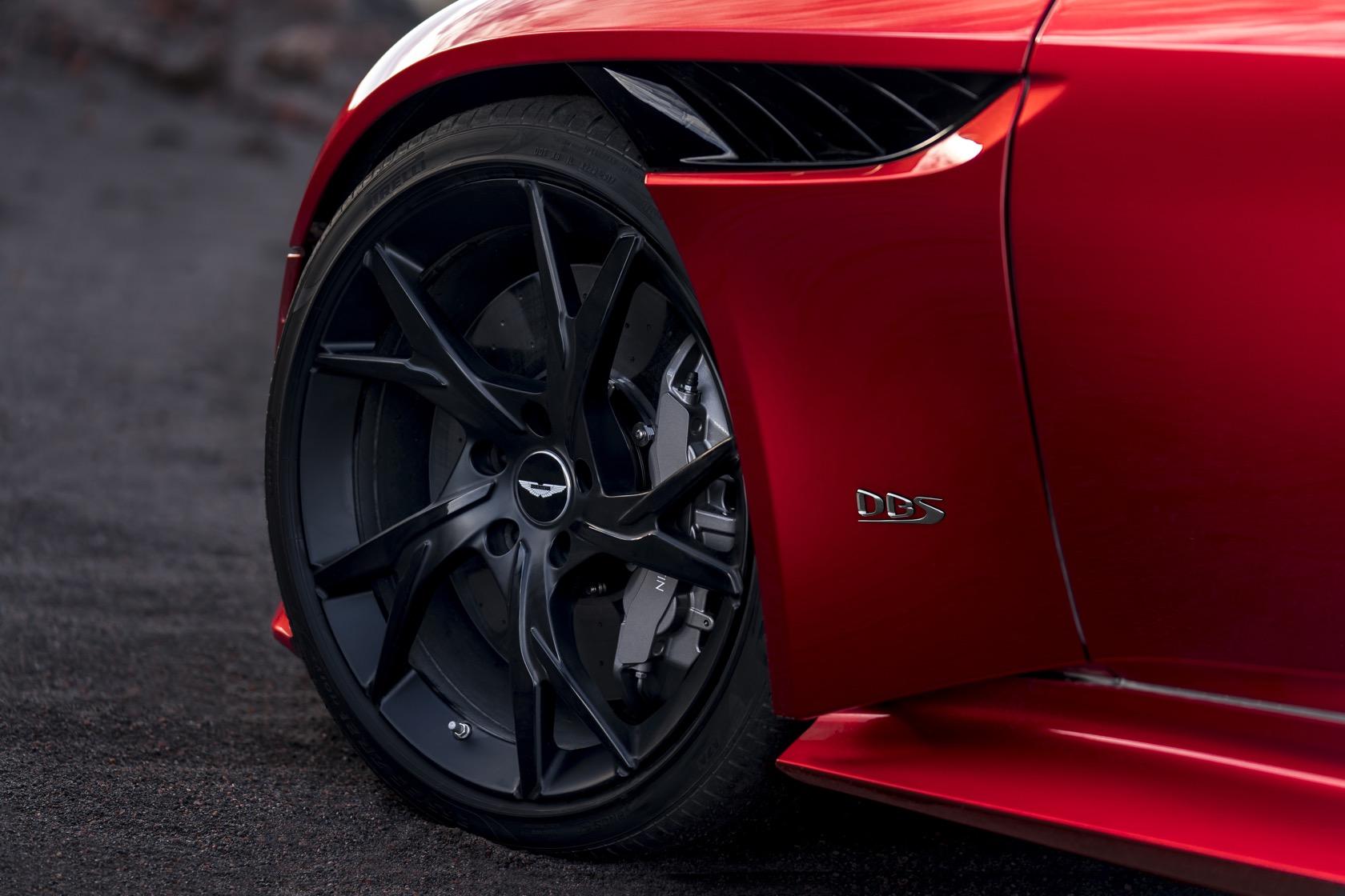 The chassis takes the DB11's lightweight bonded aluminum structure and outfits it with forged double wishbones at the front and multi-link suspension at the rear. A new adaptive damping system is standard, with three dynamic drive modes – GT, Sport, and Sport Plus – to adjust its temperament. 21-inch wheels are given 410 mm carbon ceramic brake discs on the front and 360 mm on the rear; all are ventilated, with six pistons fore and four pistons aft. They're shod in bespoke Pirelli P-Zeros.
