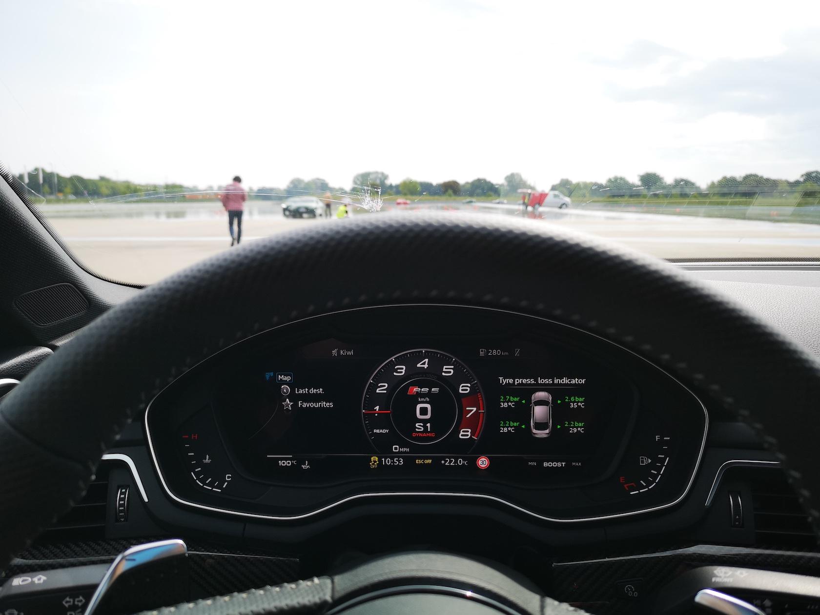 No better place, then, to run through understeer, oversteer, and slalom tests of the RS 5. With a super-slick surface it was an opportunity to see just how well Audi's Quattro system performs, with a brief foray into the RS 5 Coupe for a spin around the track.
