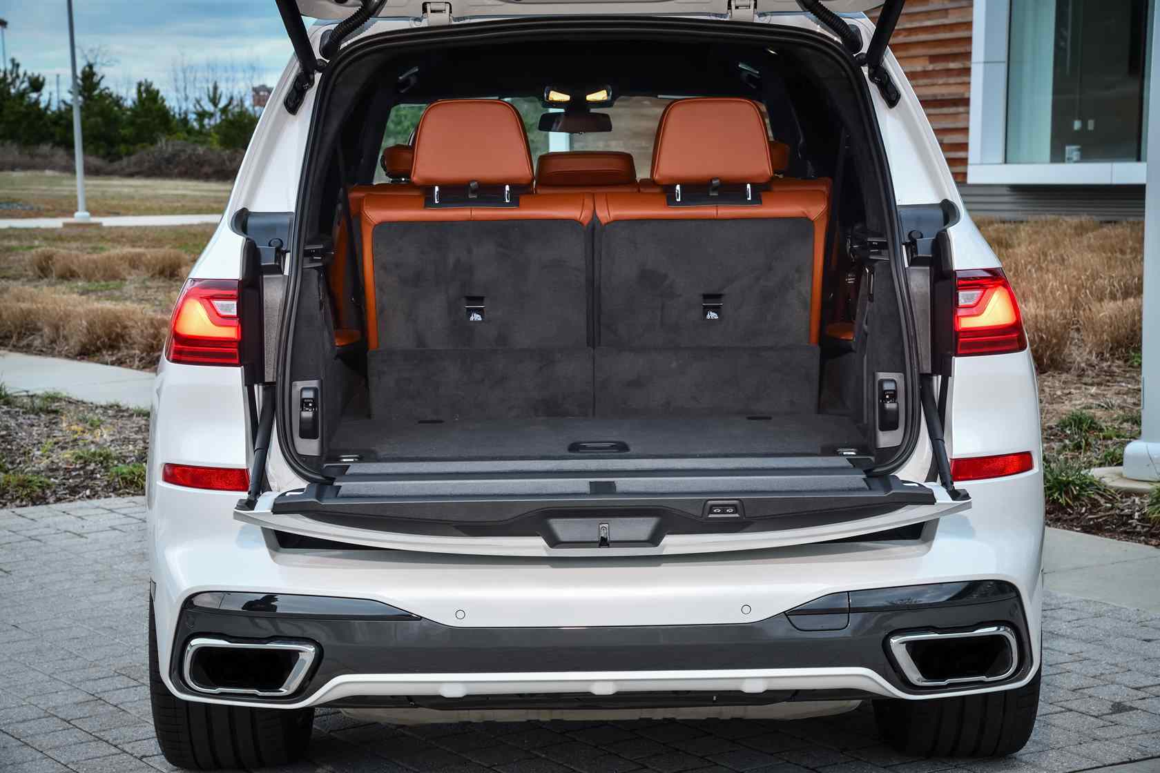 At the rear, the BMW X7 offers a surprising bonus. It comes with an automatic split tailgate for effortless loading of camping gear and sports equipment. For tailgaters, the lower portion serves as a bench to sit on. Still, if you need to haul a lot of stuff, just make sure to not overcommit on passengers. Cargo space is a paltry 326 liters when the third-row seats are up. Push a button to fold them down and cargo space improves to 750 liters. Looking for maximum shopping capacity? You get 2,120 liters of space with the third and second-row seats folded down. The two captain's chair configuration is the most comfortable second row option for people-moving, while the three-passenger bench can neatly fold down, creating a flat surface for cargo.