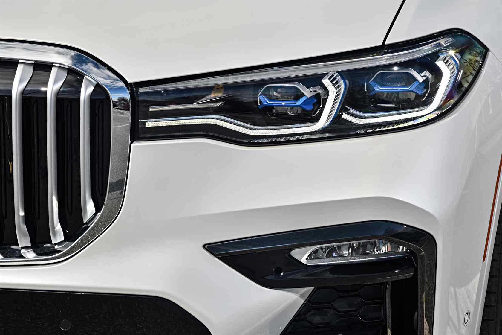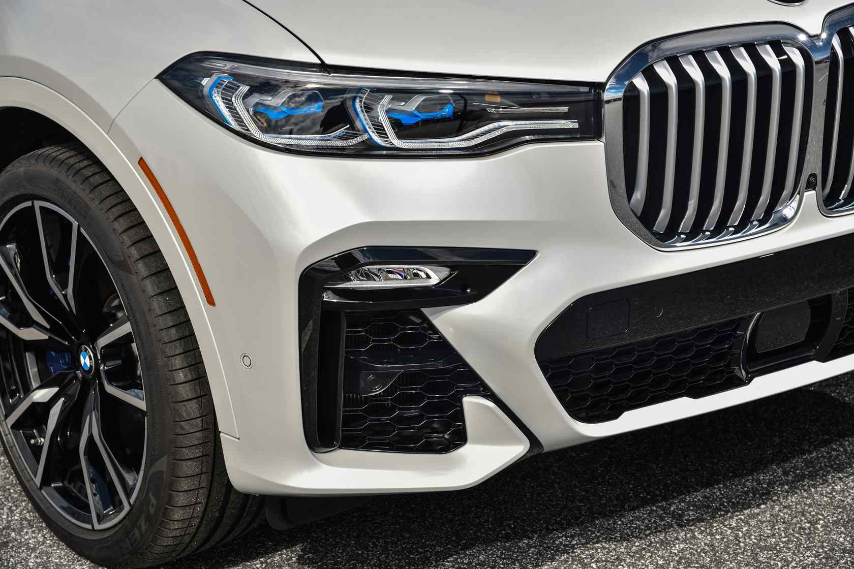 While head-on the X7 might resemble the Hollywood star of the hippo world, it still has a pair of sharp-looking and hi-tech eyes. As standard, BMW equips it with LED headlights, but choosing the BMW Laserlight option gives you blue X-shaped elements inside the headlights. They're good for almost 2,000 feet of visibility on the darkest of roads.