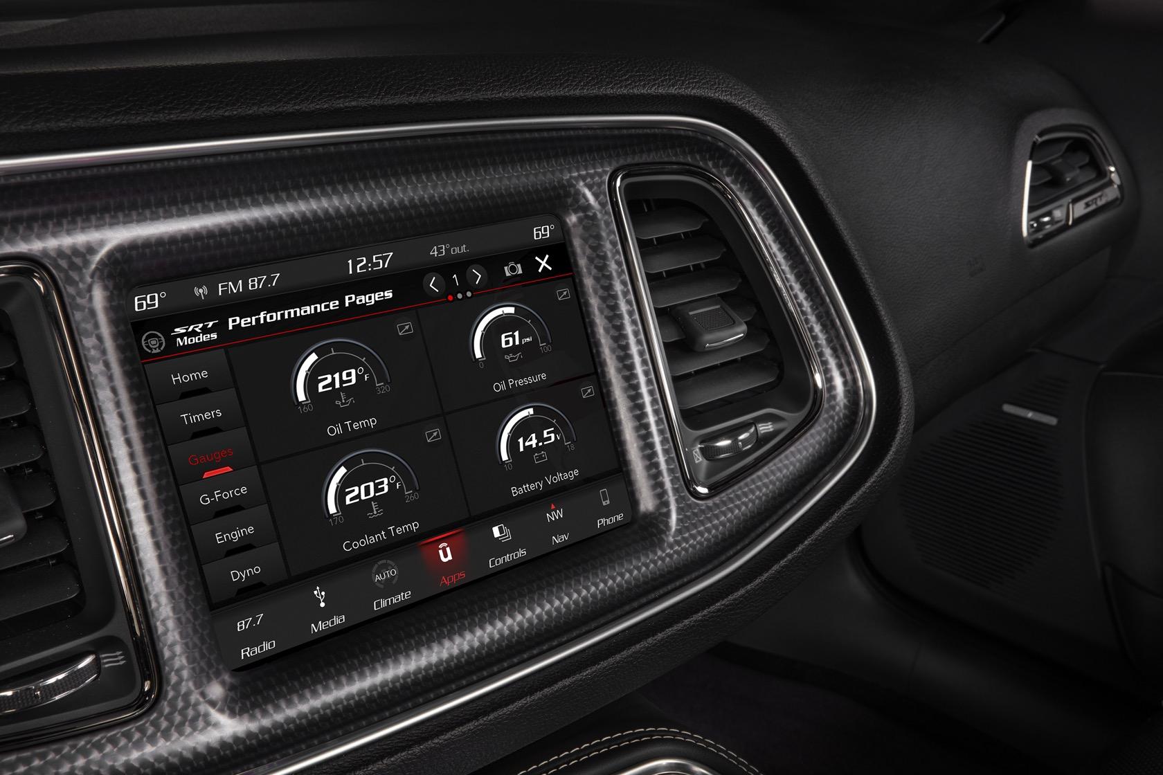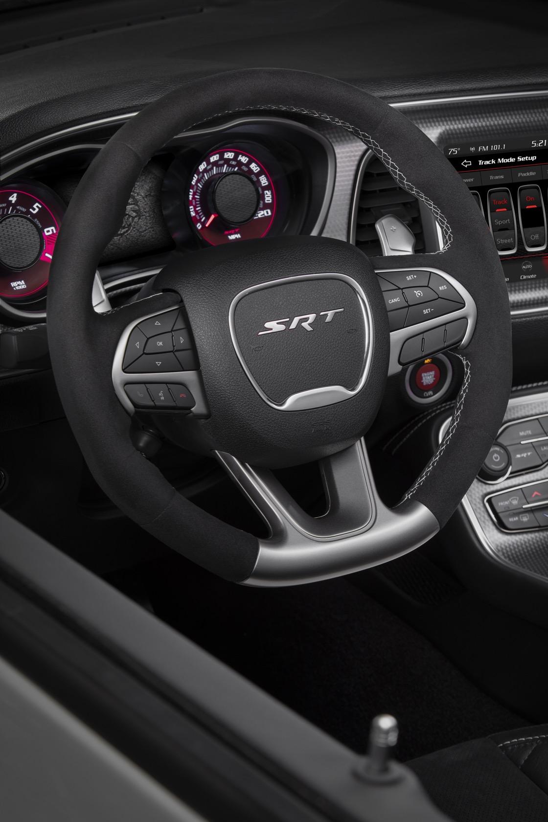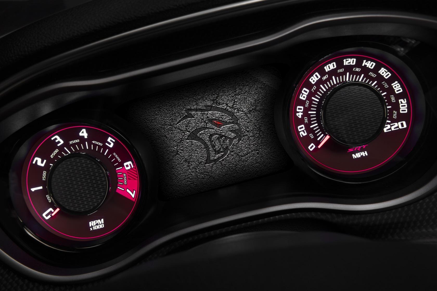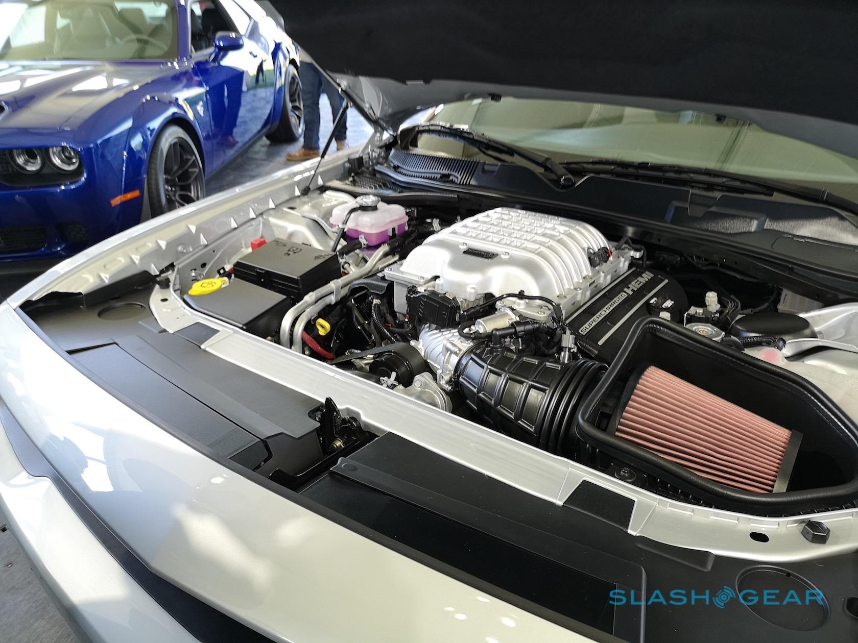 Top speed is 203 mph, and 0-60 mph comes in 3.4 seconds. There's a more aggressive design, too, with a new – and functional – dual-snorkel hood. That's shared by the 2019 Challenger SRT Hellcat as well, which now gets 717 hp and 656 lb-ft of torque. It, too, has a widebody version.