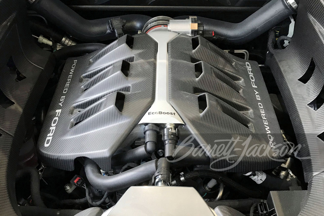 One of the coolest things inside the car is the special F1-inspired steering wheel made from carbon fiber and wrapped in Alcantara, complete with an integrated rev indicator. Like all Ford GTs, the car is powered by a 647 horsepower 3.5-liter twin-turbo EcoBoost V6. The engine is paired with a seven-speed dual-clutch automatic transmission.