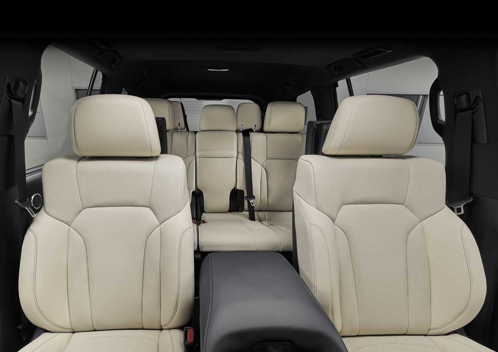 Continuing the stealth look, the LX also has smoked headlamp lenses. On the rear of the vehicle are black chrome accents for taillamps, license plate, and back door. The black exterior is contrasted inside the car with Moonlight White Semi-Aniline Leather Trim and a black headliner.