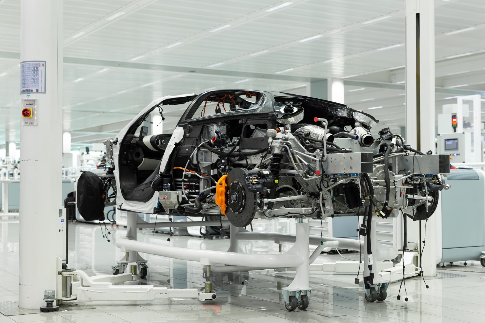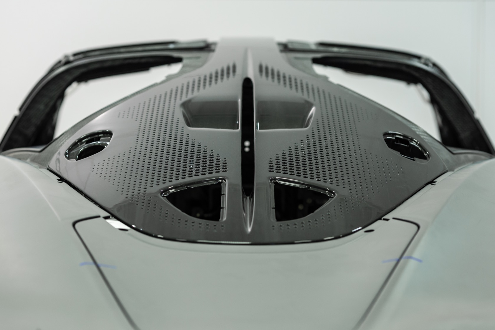 To do that it needs a seriously slippery body. Long, at almost 18 feet, it's crafted of huge sections of carbon fiber to minimize cutlines. The rear ailerons physically flex through the carbon fiber, resulting in more downforce without the drag of a traditional spoiler, while the side mirrors are replaced with slender cameras that can retract in Velocity Mode to help the 1,035hp car hit its top speed.